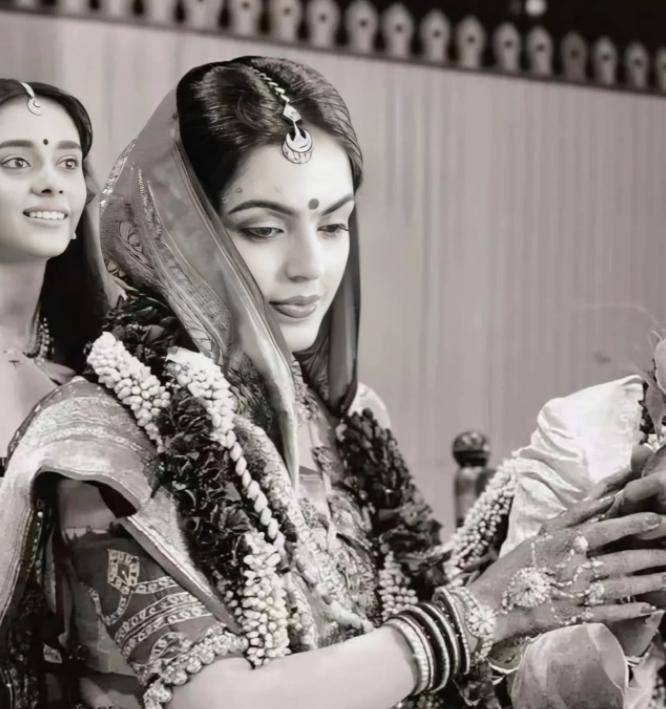 她舞姿优美娴熟,人又长得漂亮,台下正在为大儿子穆克什物色妻子人选的纺织大亨,德鲁拜看中了她。