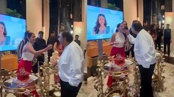 在今年的生日宴上,媒体拍到了拉迪卡与公公穆克什亲自喂食蛋糕的亲密场景,展现出两人深厚的关系。然而,近日在参加红毯活动时,拉迪卡与大伯哥阿克什的举动却引起了一些公众的争议。