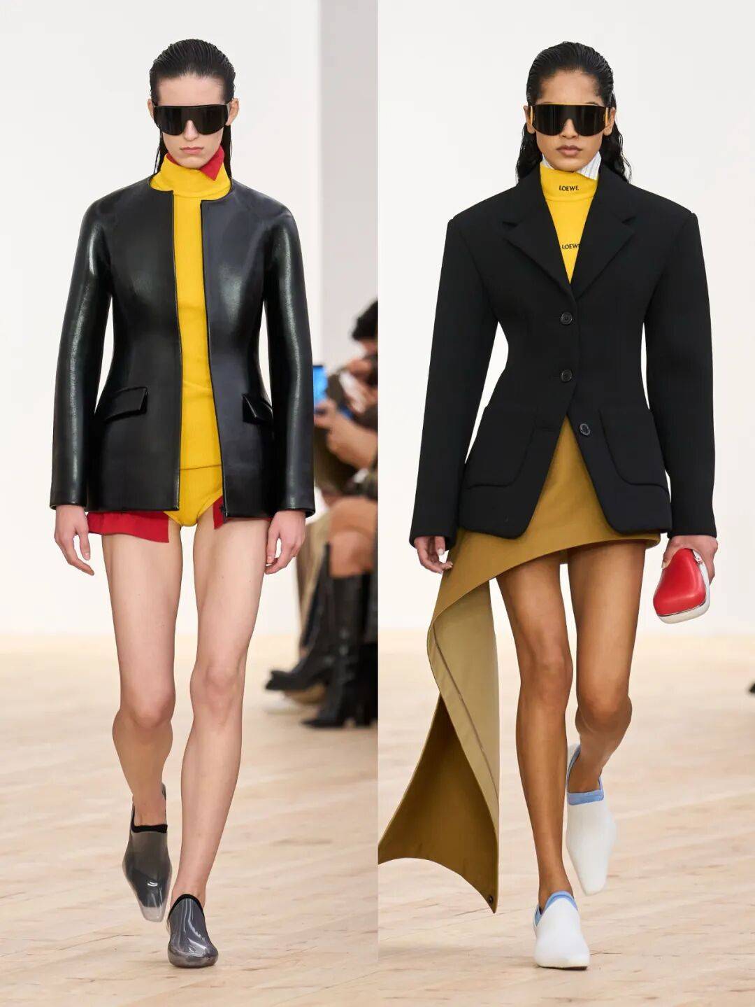 本季创新:LOEWE将透明PVC材质与亮色结合,搭配几何跟型,兼具复古趣味与现代摩登感,强化夏日活力氛围。