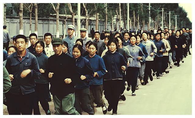 ▲ 1973年,这张由外国人拍摄的照片展示了城市工厂的工人们。清晨,工人们在开始一天的工作前进行跑步锻炼,厂区实行半军事化管理,表现出一种纪律严明的工作氛围。