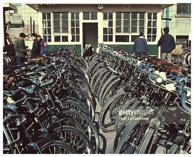 ▲ 1979年,一个自行车存放处,一位戴红袖章的老人正在看管这里。那时,这种单位停车场是免费的,与农村的大集相比,收费却少得多。