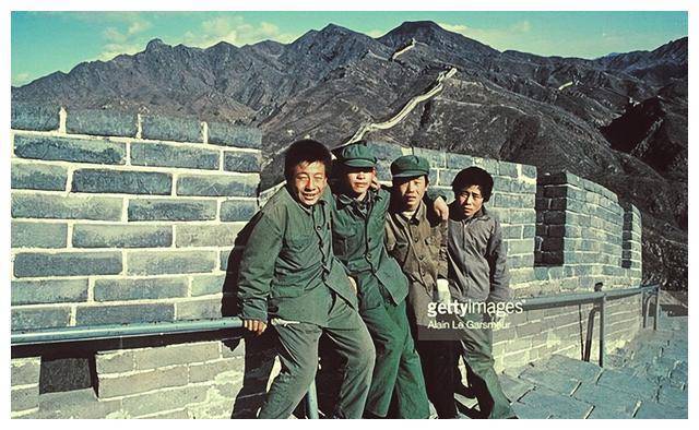 ▲ 1979年,四位男子在长城上合影。那个年代,穿着军装和戴着军帽是时髦的象征。无论条件如何,大家都希望穿上绿色军装,带上一顶军帽,即使只配得上一个帽子或一双鞋,也要尽可能做到全身绿。