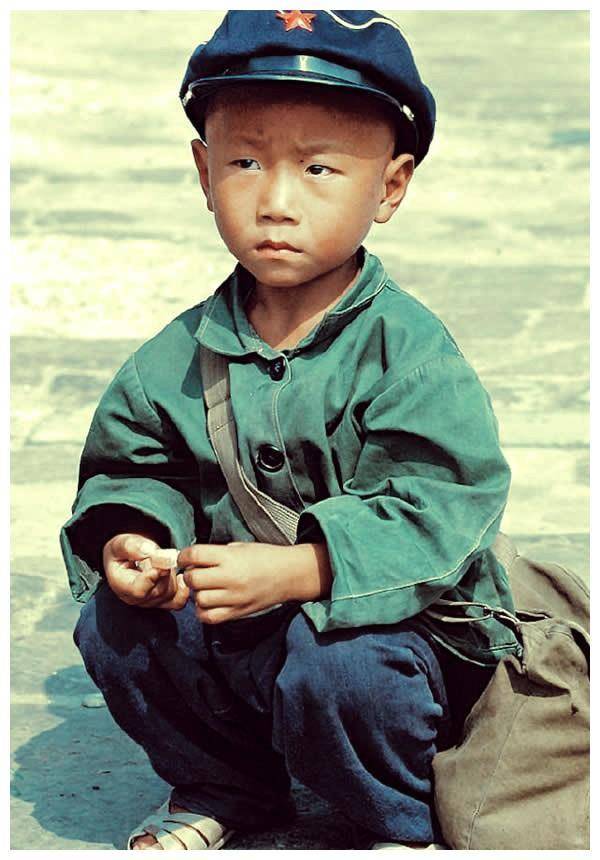 ▲ 最后一张照片展示了一个更小的孩子,他在等待父母来接他。大大的脑袋和书包,显示出那个时代孩子们简单而纯粹的生活状态。