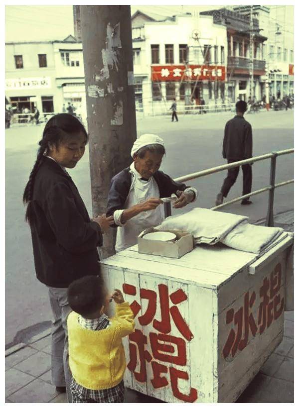 ▲ 1973年,一位年轻的母亲带着儿子买冰棍。在那个年代,冰棍的种类远不如今天丰富,只有单一的老式冰棍,而稍微高档一些的叫做奶油冰棍,成为了不少孩子们的喜爱。