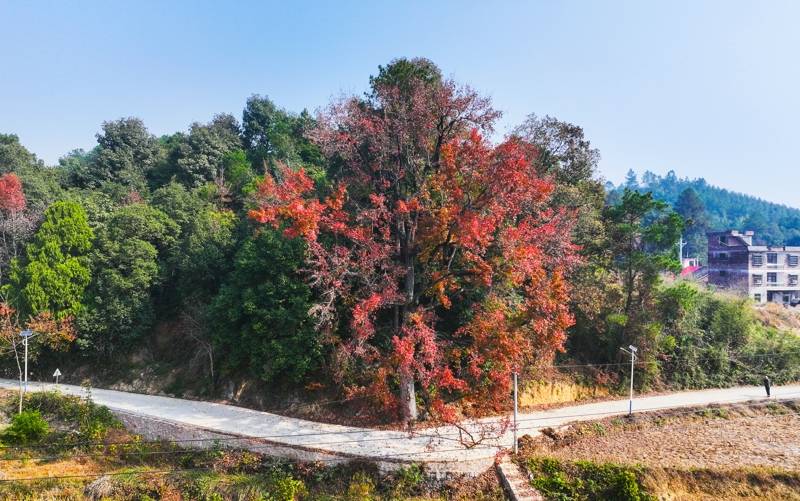 大风村古枫树 800年树龄,叶片如火 文化传承、旅游打卡地