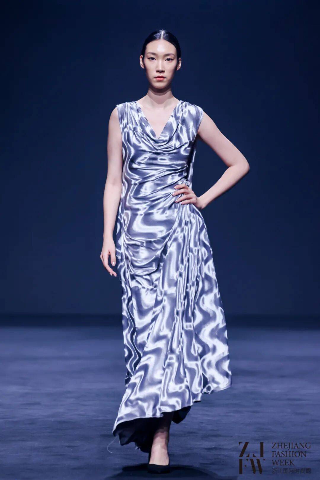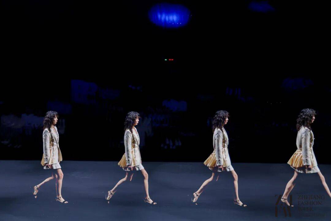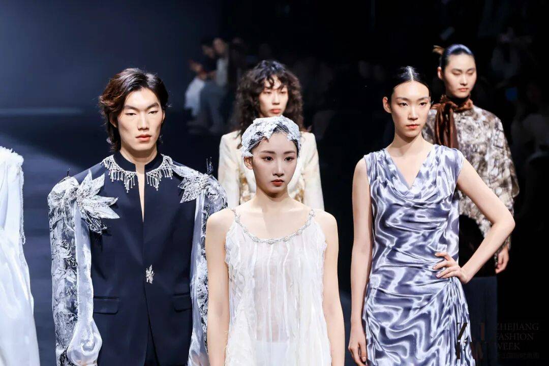 全息投影呈现星轨环绕模特,服饰上的智能纤维随音乐律动变色,寓意“宇宙与个体的共鸣”;