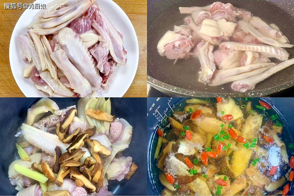 1. 鸭肉洗净切块,冷水下锅焯一下捞出;香菇泡发后去蒂。