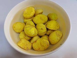 首先来处理食材:冷水煮栗子,水开后煮一分钟关火,水不烫手就可以剥板栗了,趁热很好剥,若等水放凉了栗子的那层绒毛就很难抠。想偷懒的就去菜市场看有没有那种现剥的栗子卖,就别嫌贵啦,买点回来省事。千万不要买袋子里装好的那种机器脱壳的冻栗子,真的味道完全不一样。