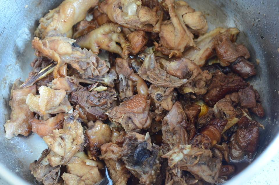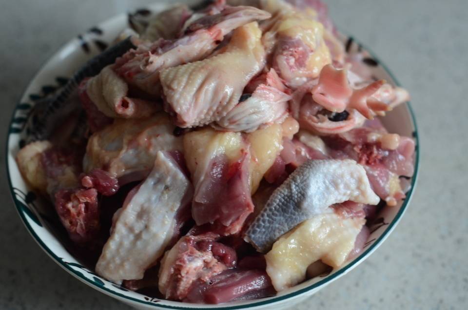 鸡块本身含有不少水分,炒着炒着会有不少水分出来。让鸡去腥的秘诀在于,大火爆炒,炒干水分直至有鸡油析出。