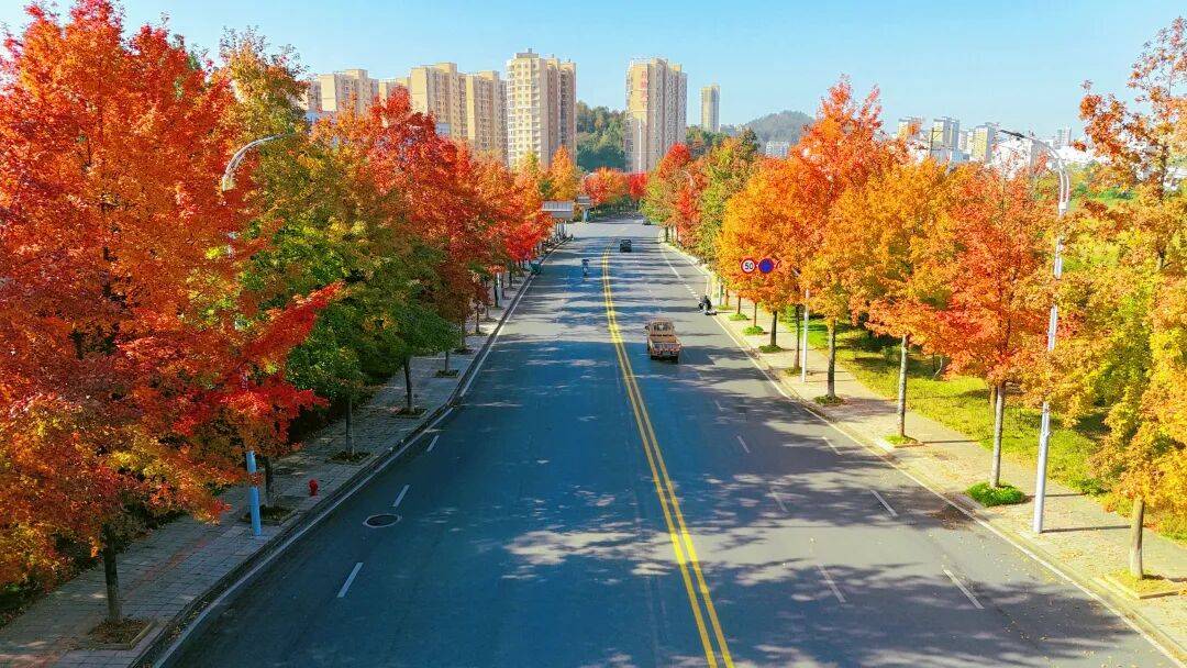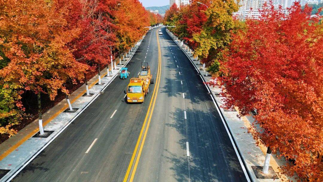 这条几公里的道路,随着枫叶进入盛红期,不少通勤者会在等红灯时拍下沿途风景,分享到社交平台,“高新区上班路”成了本地秋冬日打卡热点。