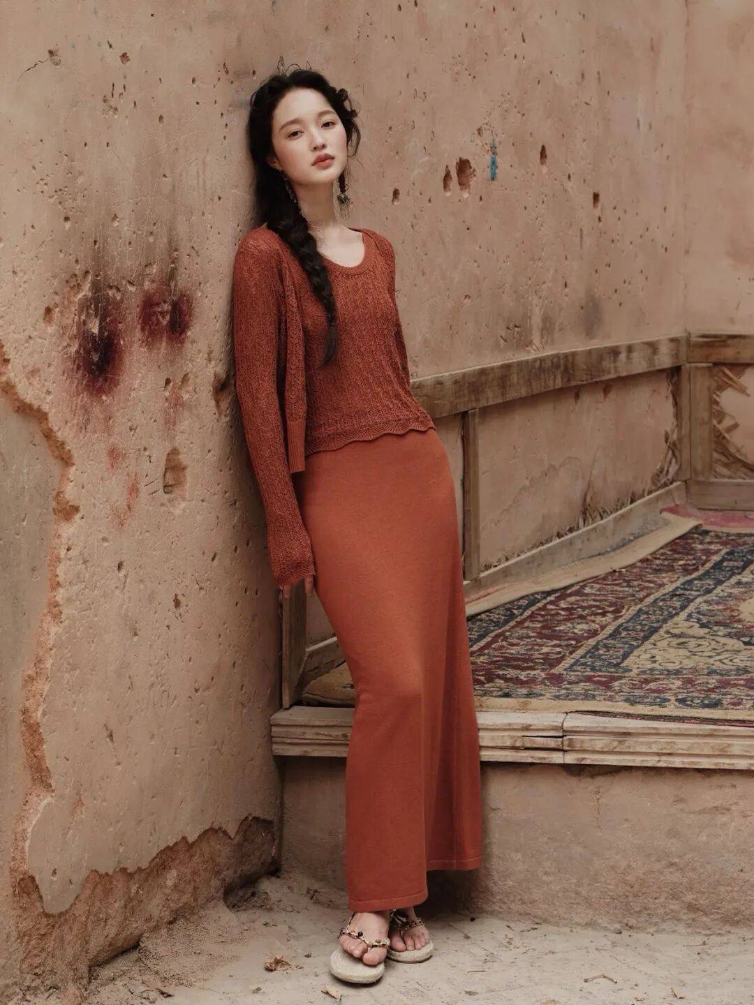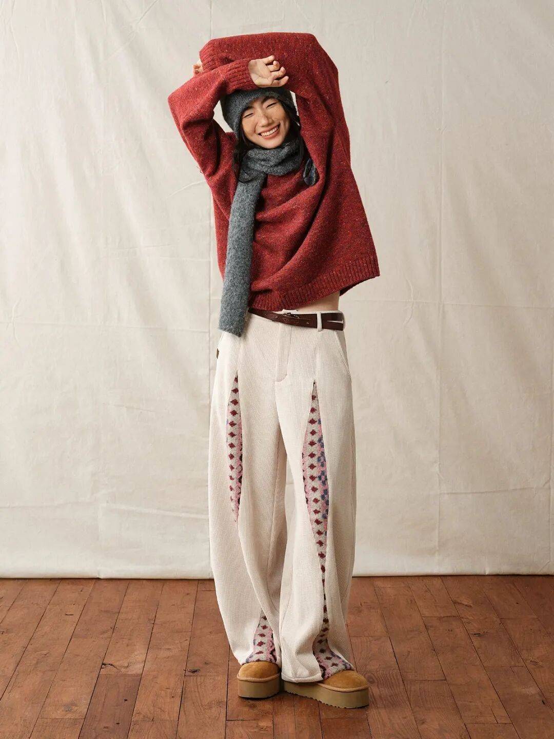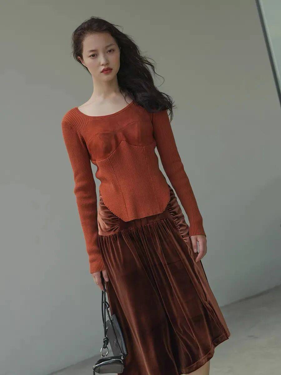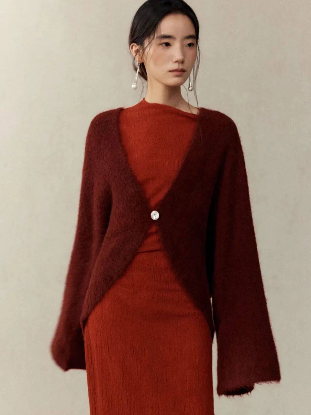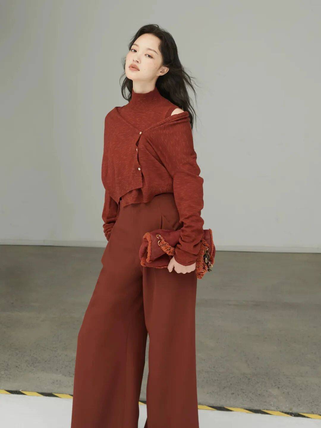 沉淀陶红 → 酒红色:如陈年红酒般醇厚,自带高级感与复古韵味。它不张扬却极具存在感,非常适合亚洲肤色,显白又提气色。无论是酒红色皮衣13、毛衣29还是大衣,都能轻松打造“静奢风”造型。