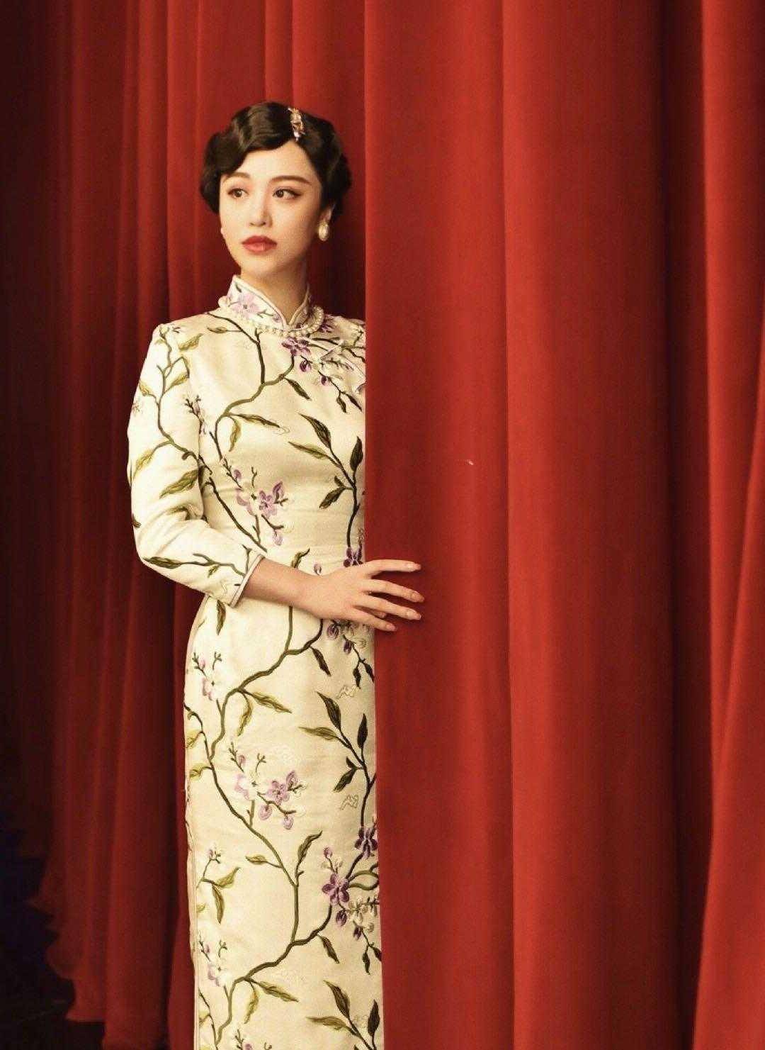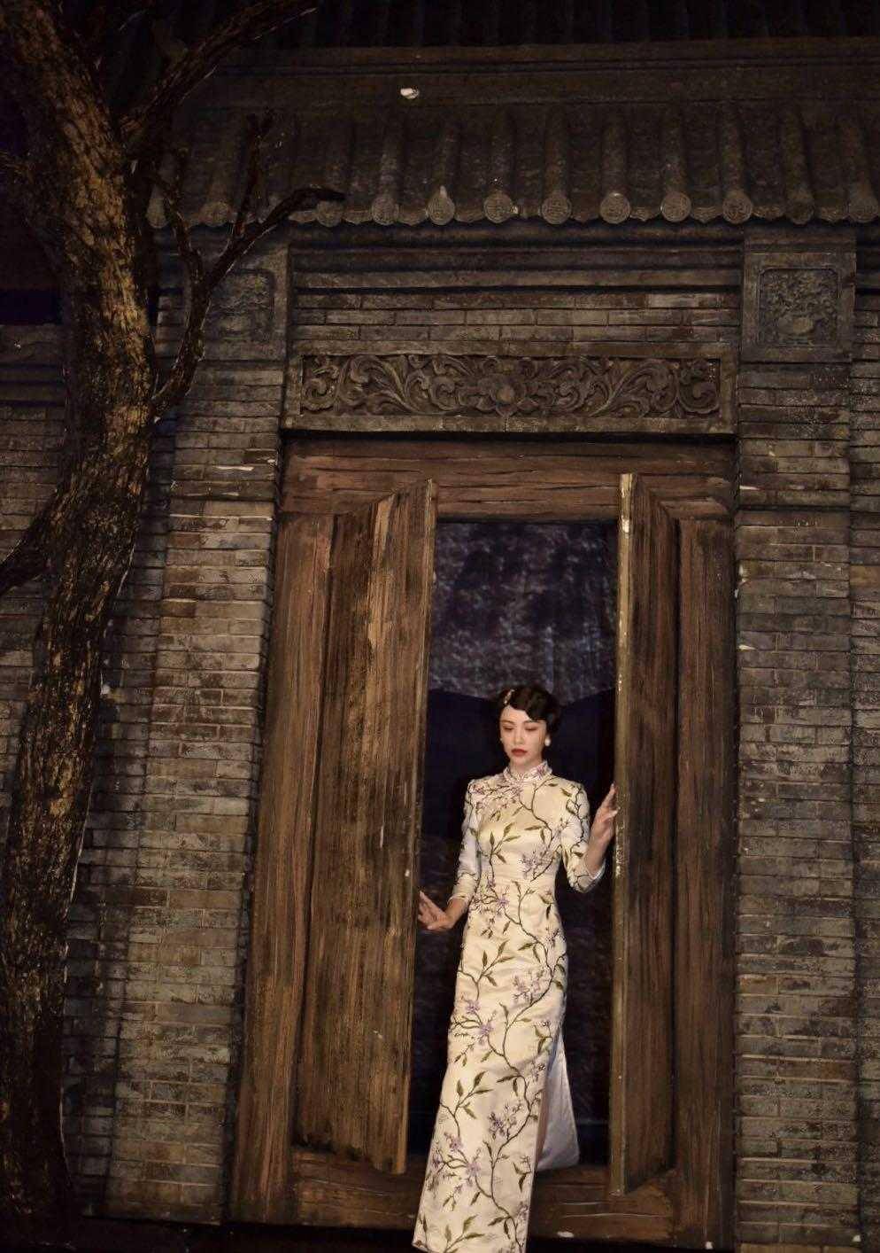 开叉部位颇为引人注意,是旗袍至关重要的一部分。开叉有着讲究,既不能过高也不能过低,过高容易出现走光情况,会显得整个人十分艳俗;过低则会对双腿形成束缚,影响自由行动。葛天所穿这件旗袍的开叉部分恰到好处,行走时能让美腿若隐若现,呈现出朦胧的美感。其线条极为流畅,显得她身材高挑,还将旗袍的风格阐释得极为充分。