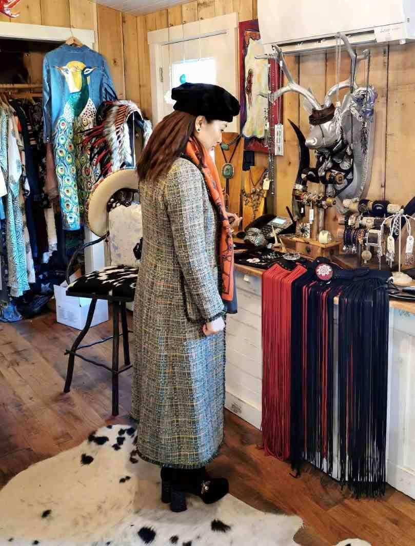 朱太太身材相对高挑些,故而她身着这种中长款呢子大衣,中长款大衣不但能够起到保暖抵御寒冷的功效,还能够增添人的气场,使人看上去端庄又大方。周太太的这件呢子大衣是以绿色与黄色为主色调的,其上还有格子样式的设计,愈发彰显英伦复古风格。