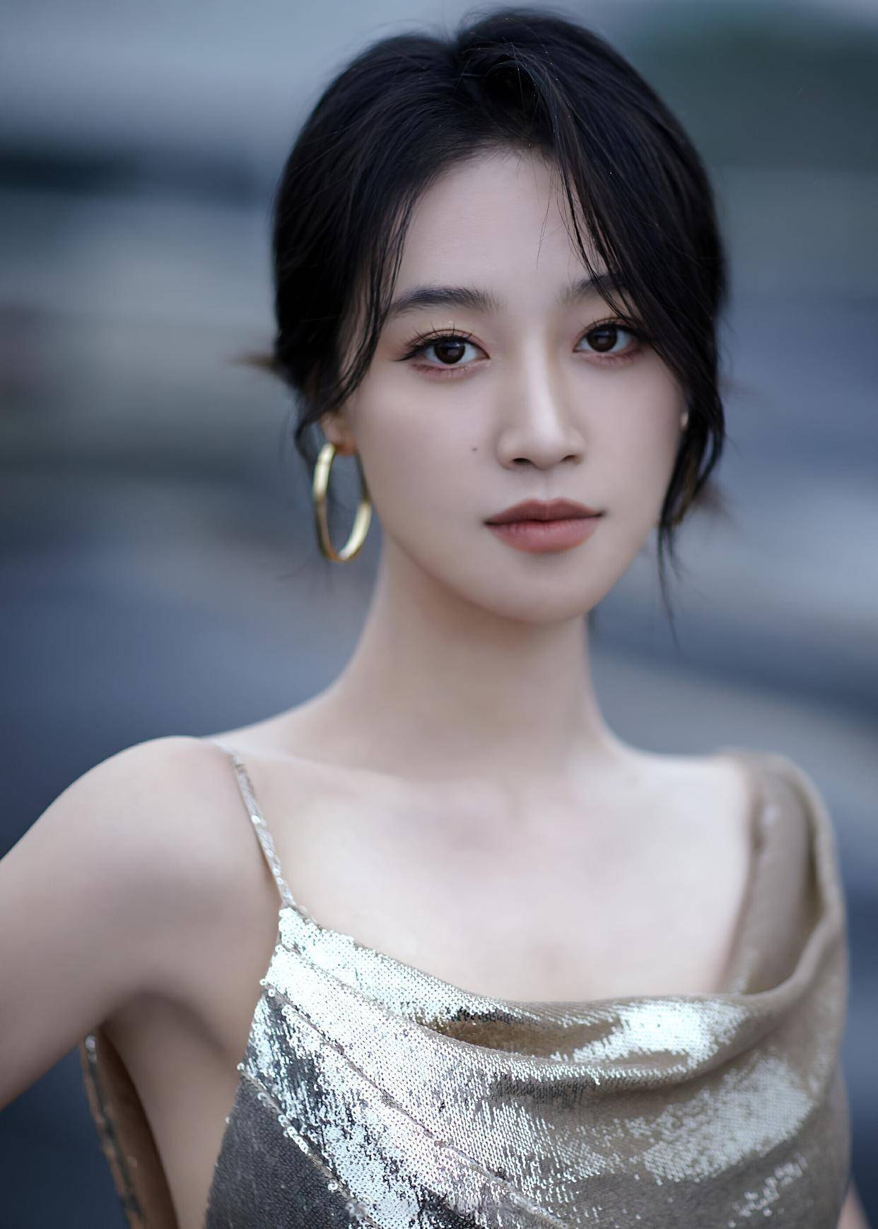 受刘海修饰影响,李艾的脸呈现出被修饰得极小的状态,她的妆容具备自然的特质,能够展现出她所拥有的知性以及优雅之态,口红颜色并非那种极为亮眼的红色,而是贴近自然唇色的淡粉色,她的妆面尽显干净、透亮的特点,易于突出她自身所具备的良好气质。