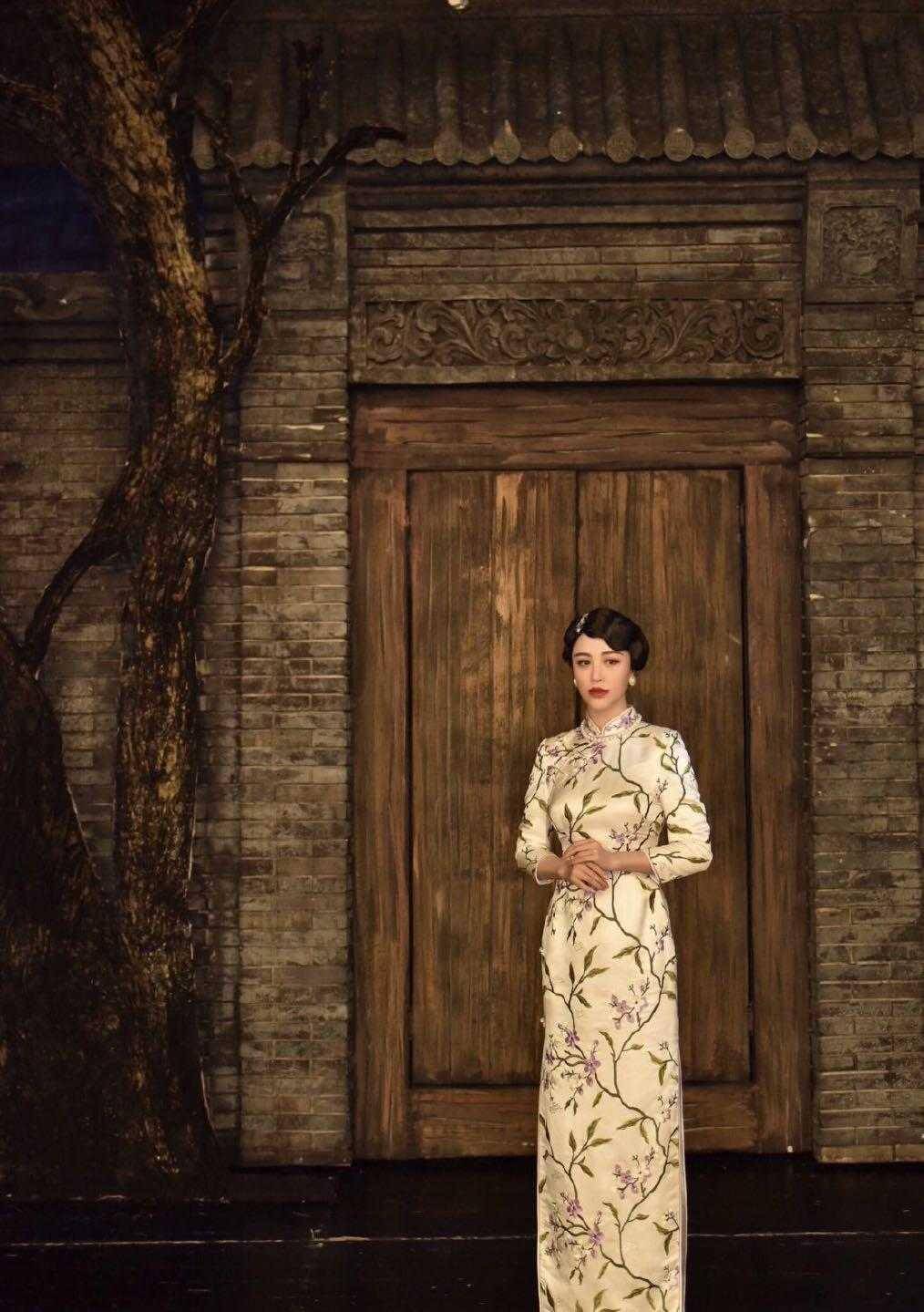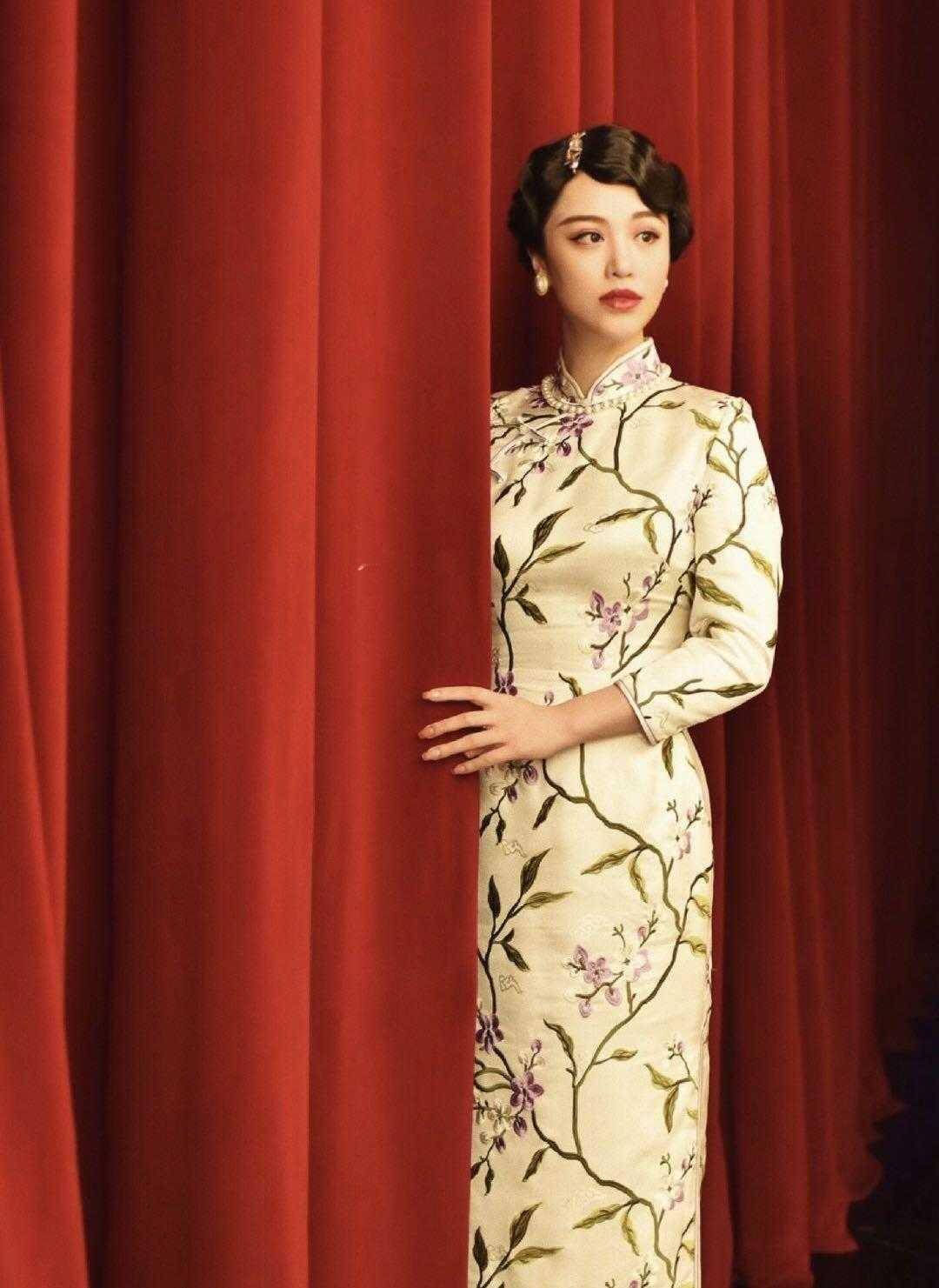 一件旗袍上,花纹图案将其整一个覆盖面铺满,在使得旗袍设计不至于显得单一化的情形下,还为旗袍增添了端庄以及大气的特质,极为凸显穿着者的气质。葛天所着的这件旗袍,很好地对她的胸型予以勾勒,虽说呈现出了她的身材线条,然而并非紧贴身体,依旧给身体留出了一部分空间。花纹图饰朝着旗袍下摆持续延伸,丰富了旗袍里边包含的时尚元素,从而彰显出葛天温婉的气质。