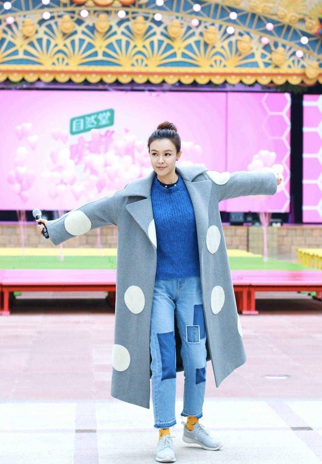 带有波点的呢子大衣,会给人一种土气的感觉,波点这一元素,本身其实是颇具少女感的那种时尚要素,然而呢,太大颗的波点显得特别累赘,尽管点缀在大衣上的时候很是抢眼,可却没办法增强大衣的美观程度。长款的呢子大衣相对厚重,给身体增添了不少重量。像李艾那样把大衣敞开着穿,露出里面能够展示较好身材比例的内搭,这样就不会显得腿短。牛仔裤上有补丁的部分十分亮眼,借助几何图案的简单拼接,丰富了牛仔裤的时尚元素 。