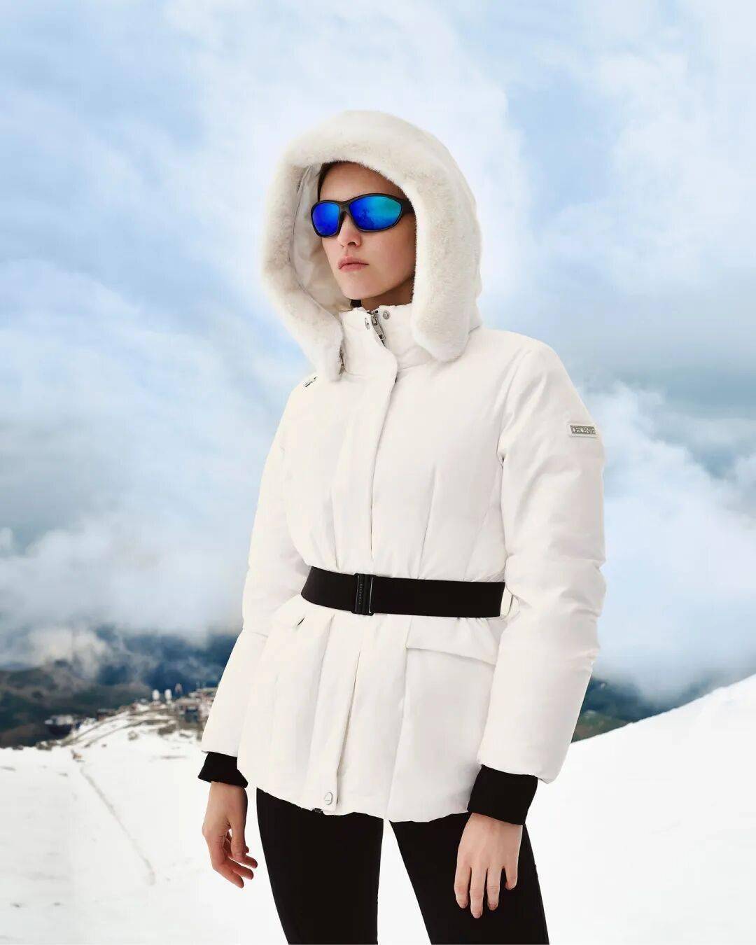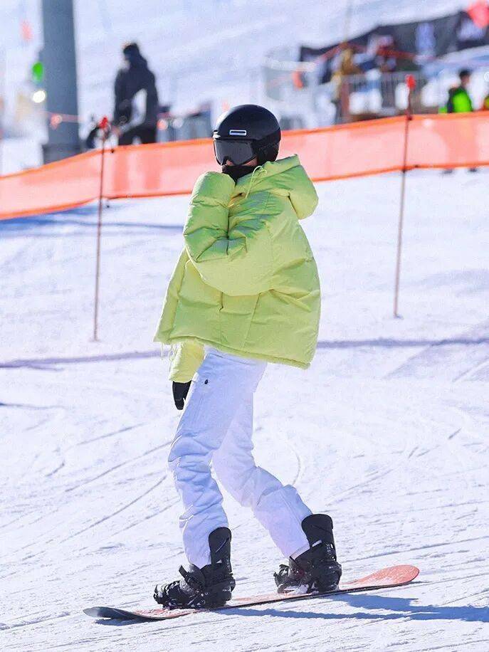 想要在滑雪时展示身材,短款羽绒服或者贴合身形的连体滑雪服高腰修身,不仅能减少风阻,还清晰准确地勾勒出身材曲线。