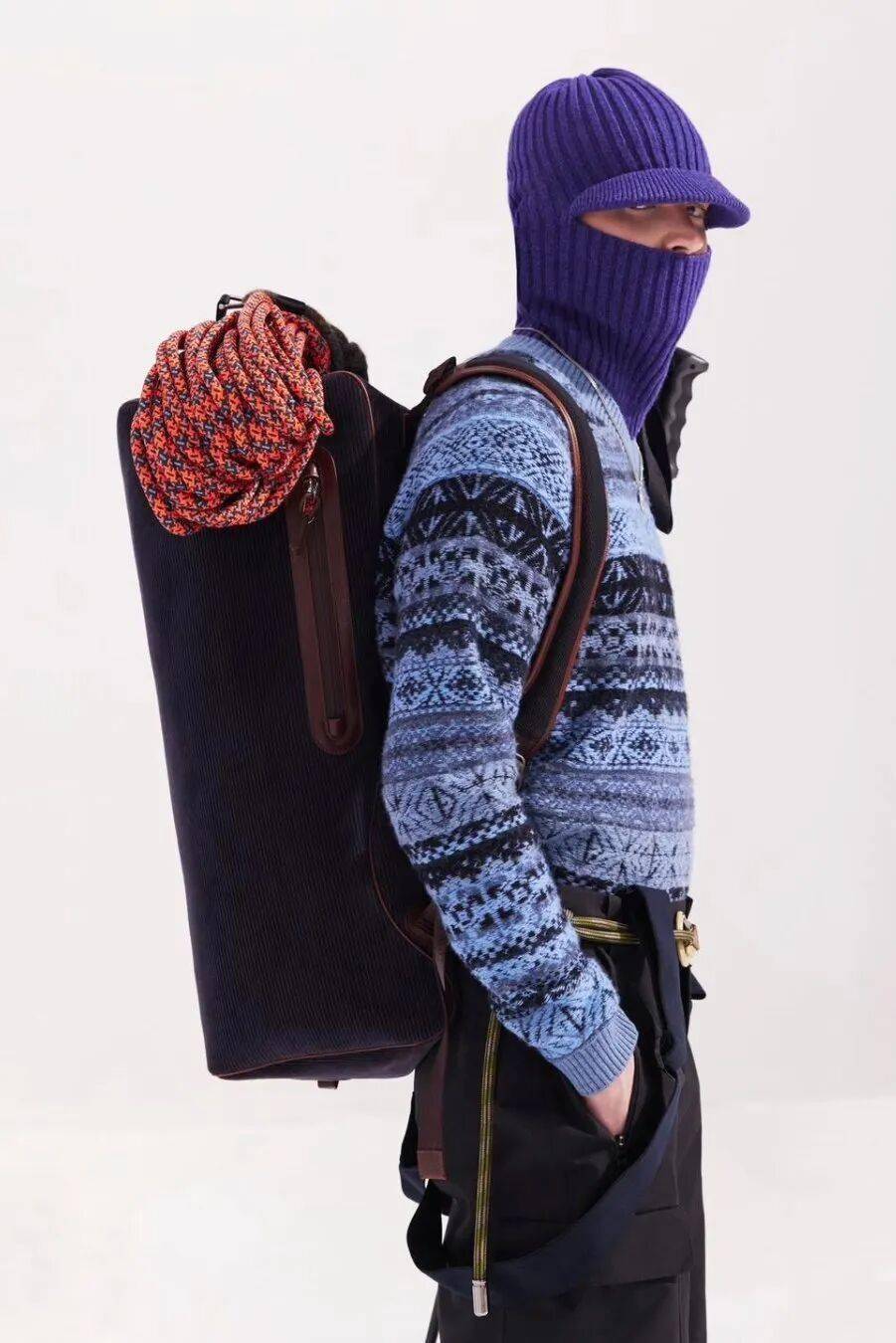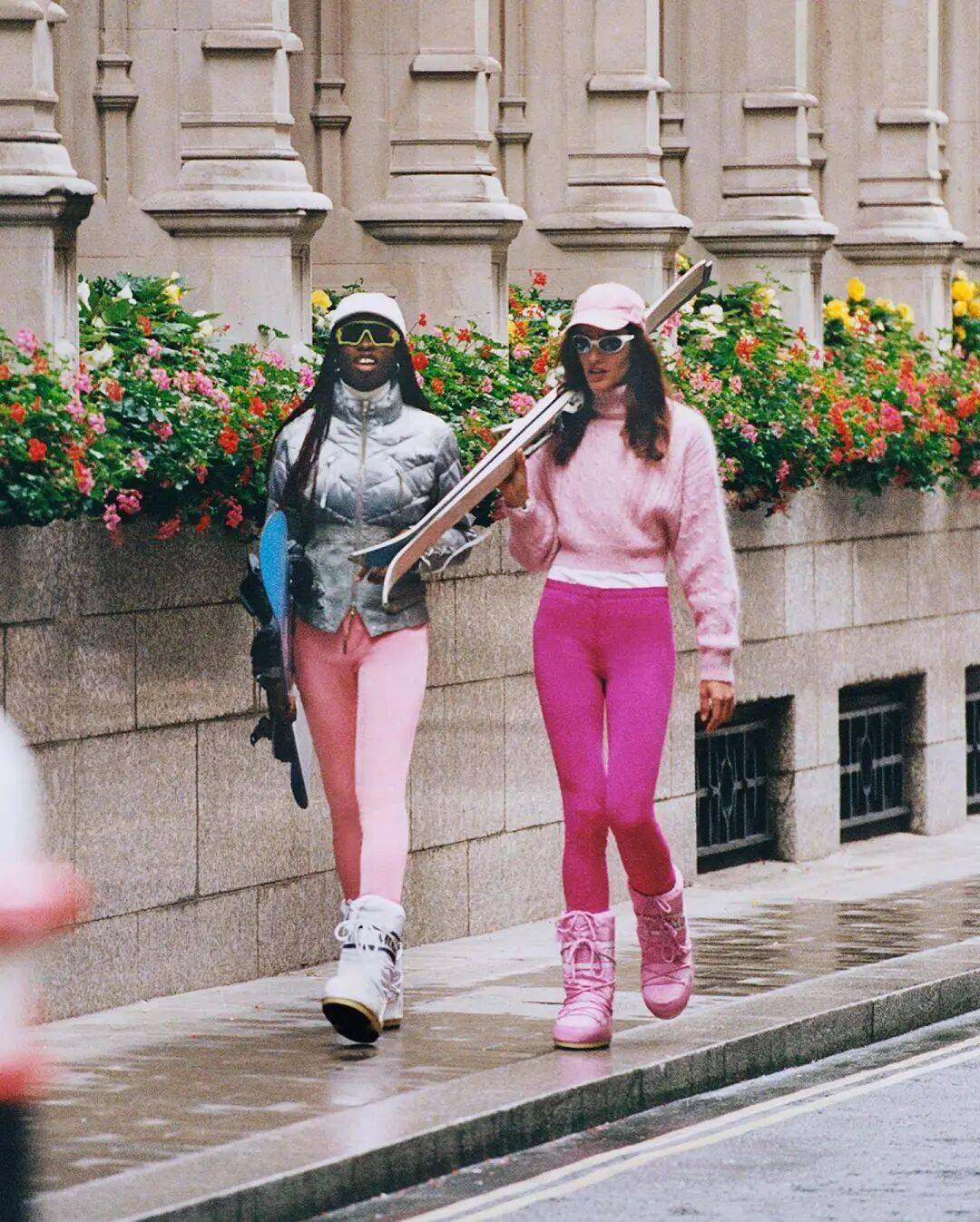 单品混搭:滑雪镜、巴拉克拉法帽、连体雪服、Moonboot雪靴等配件被重新解构,用于城市穿搭中制造反差感 。