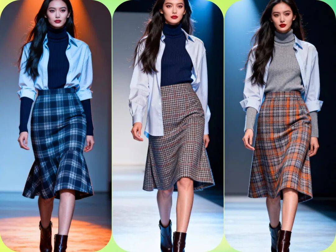 细节加分:针织衫可选带细微纹理(如坑条、亮丝)的款式,增加质感;半裙材质选呢子或毛呢,保暖又挺括。