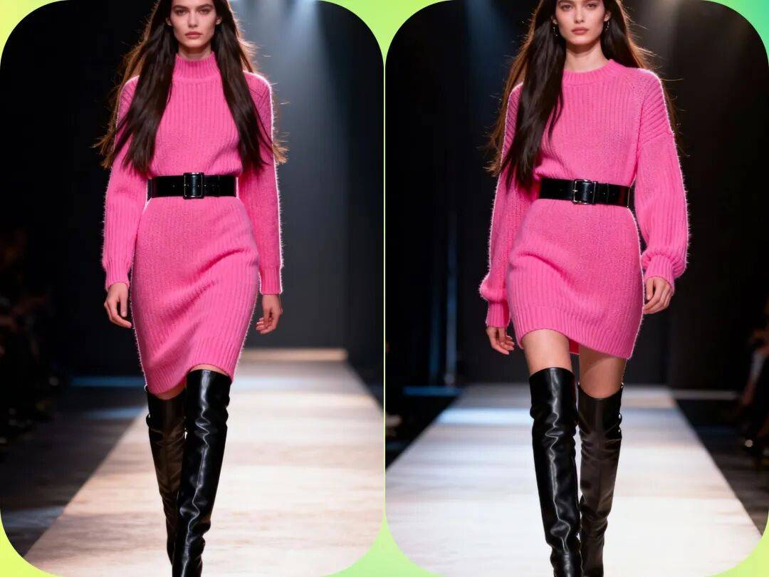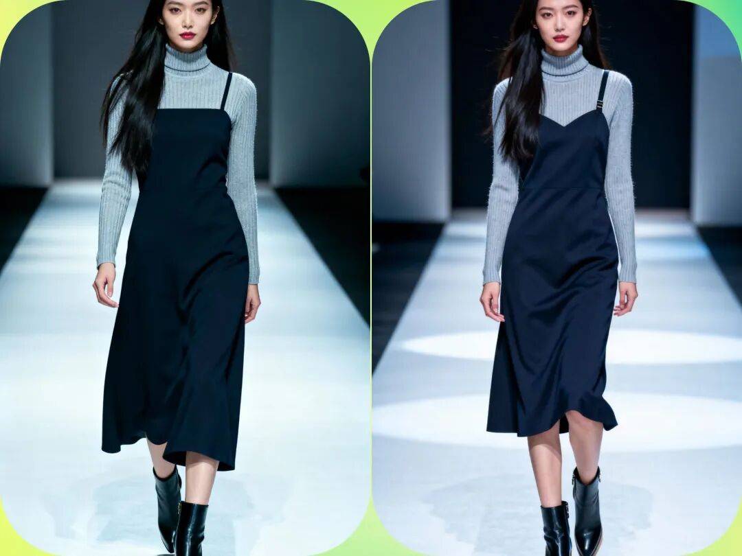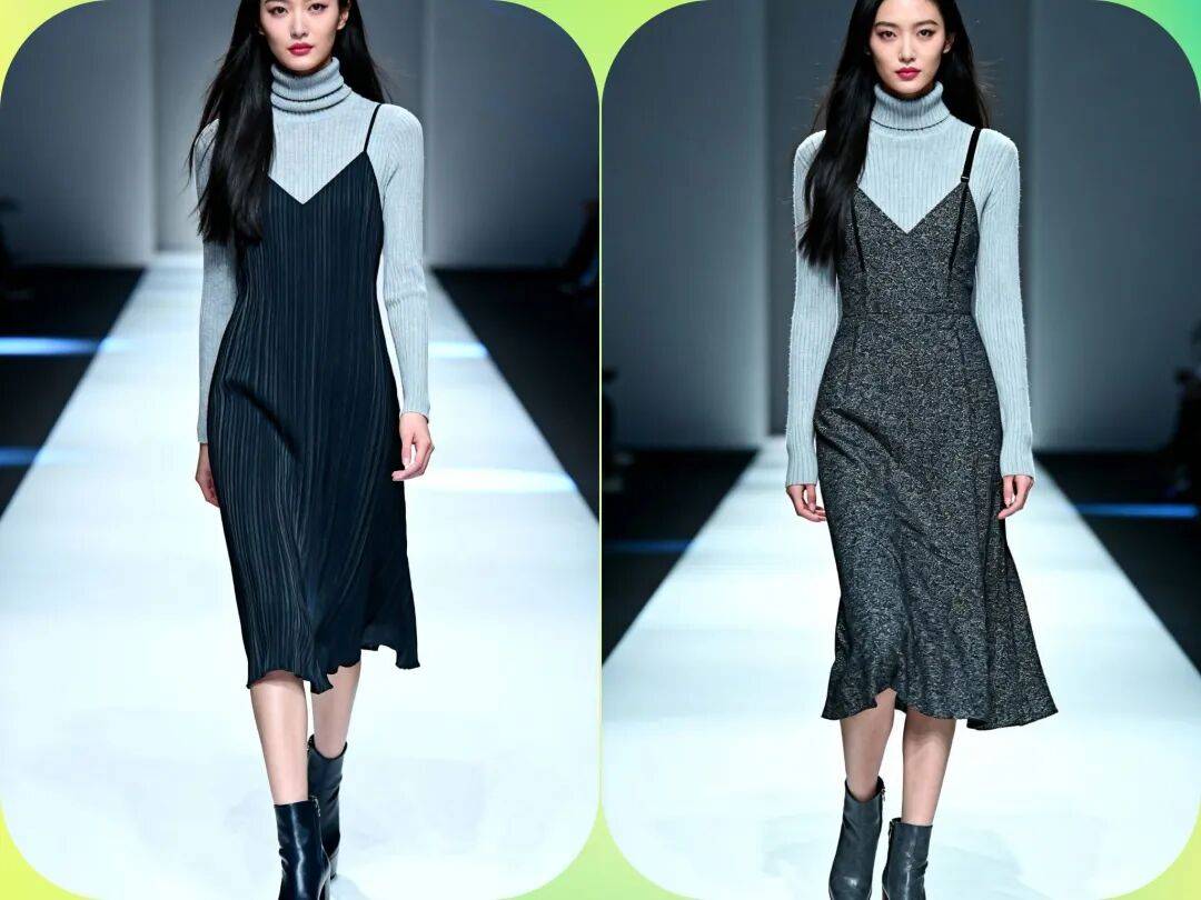 流行趋势:针织连衣裙流行鱼尾下摆、不对称设计和侧开衩细节。深绿色、酒红色和巧克力色等浓郁色调备受青睐。