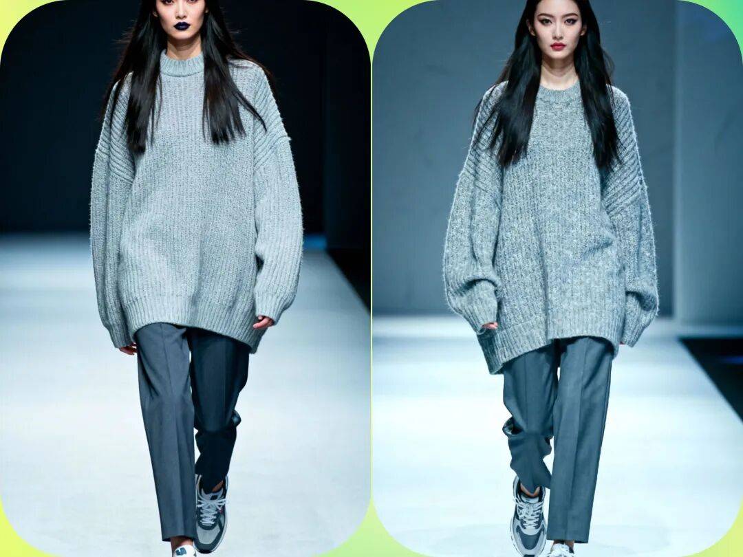 搭配方式:宽松的oversized针织衫搭配直筒或紧身牛仔裤,配上运动鞋或短靴,轻松打造日常休闲look。