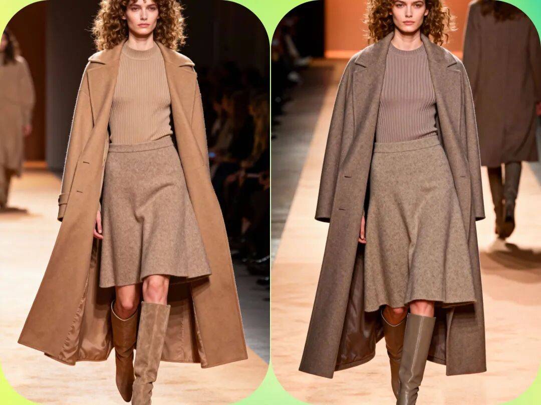 颜色搭配:“奶茶咖+白”(奶茶咖针织背心+白衬衣+同色收腰大衣)温柔又高级,适合商务会议;“灰+黑”(灰色针织衫+黑色阔腿西裤)简约大气,适合日常通勤。