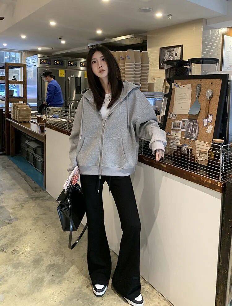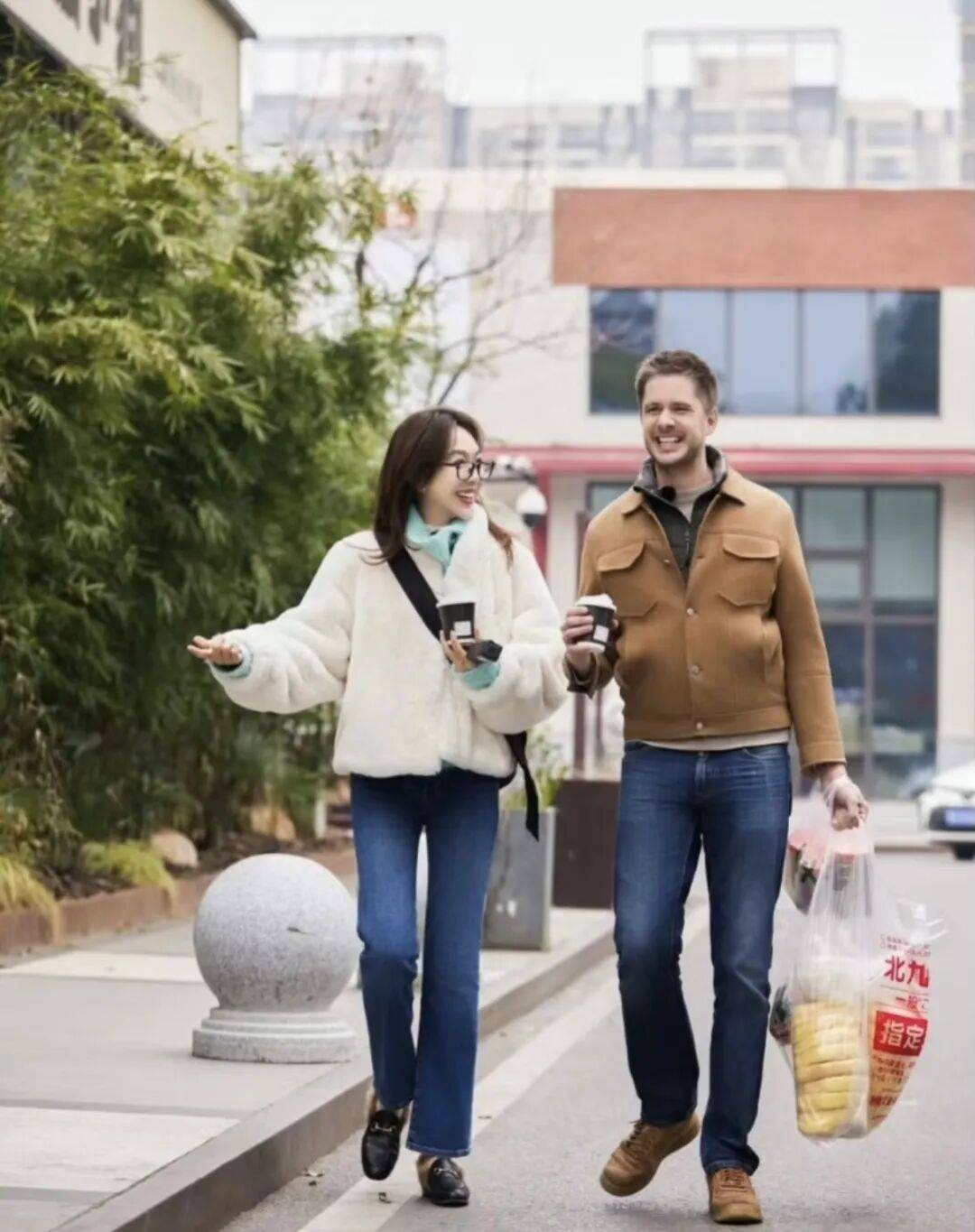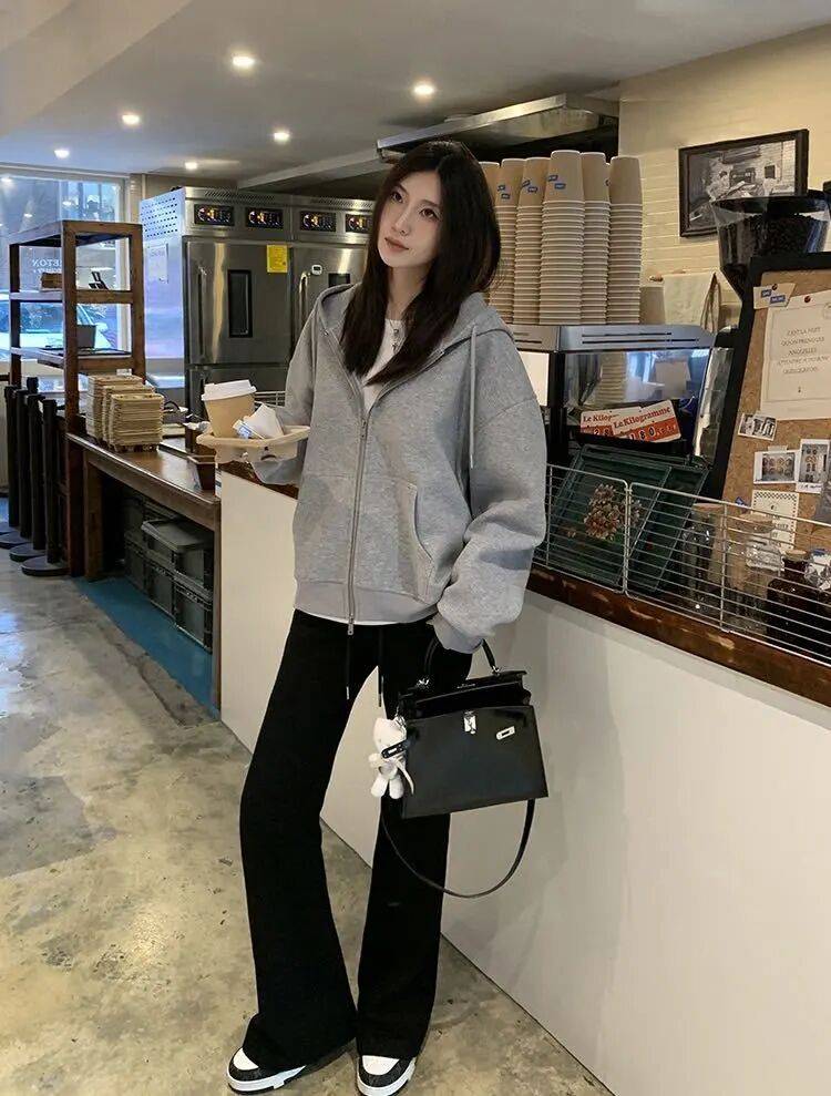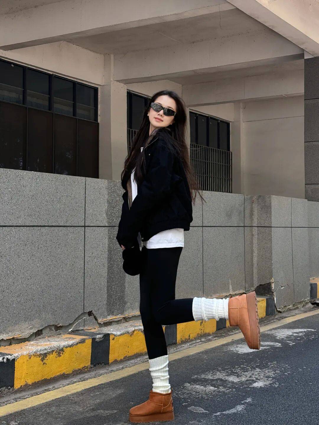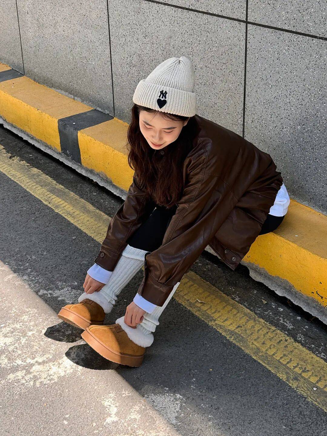 延续毛绒单品保暖性,下身替换为白色直筒裤或奶奶裤,强化温柔气质,适合追求轻熟风格的女性。