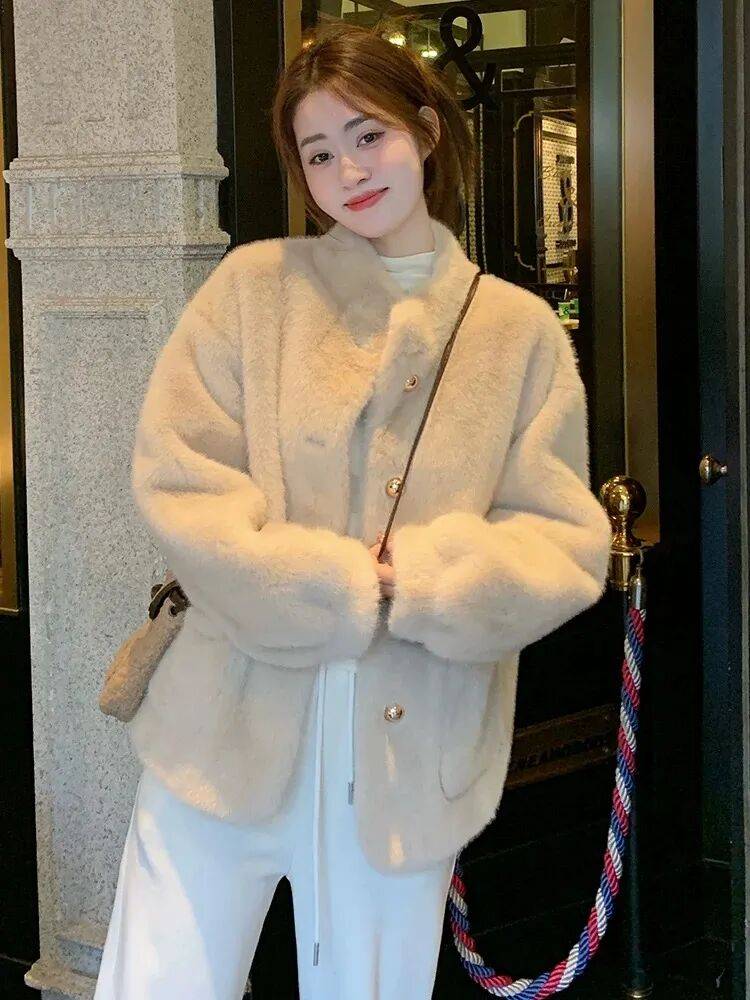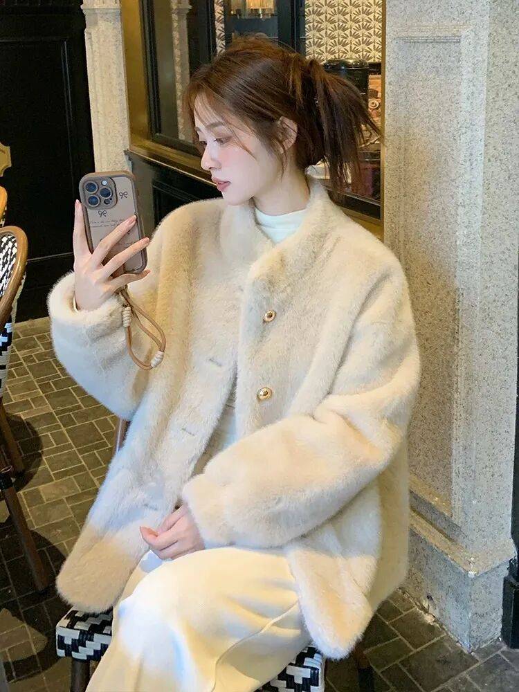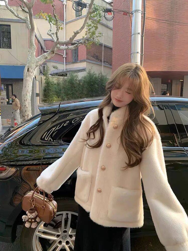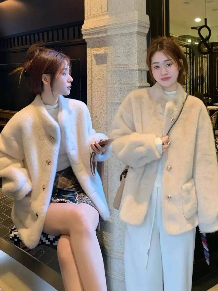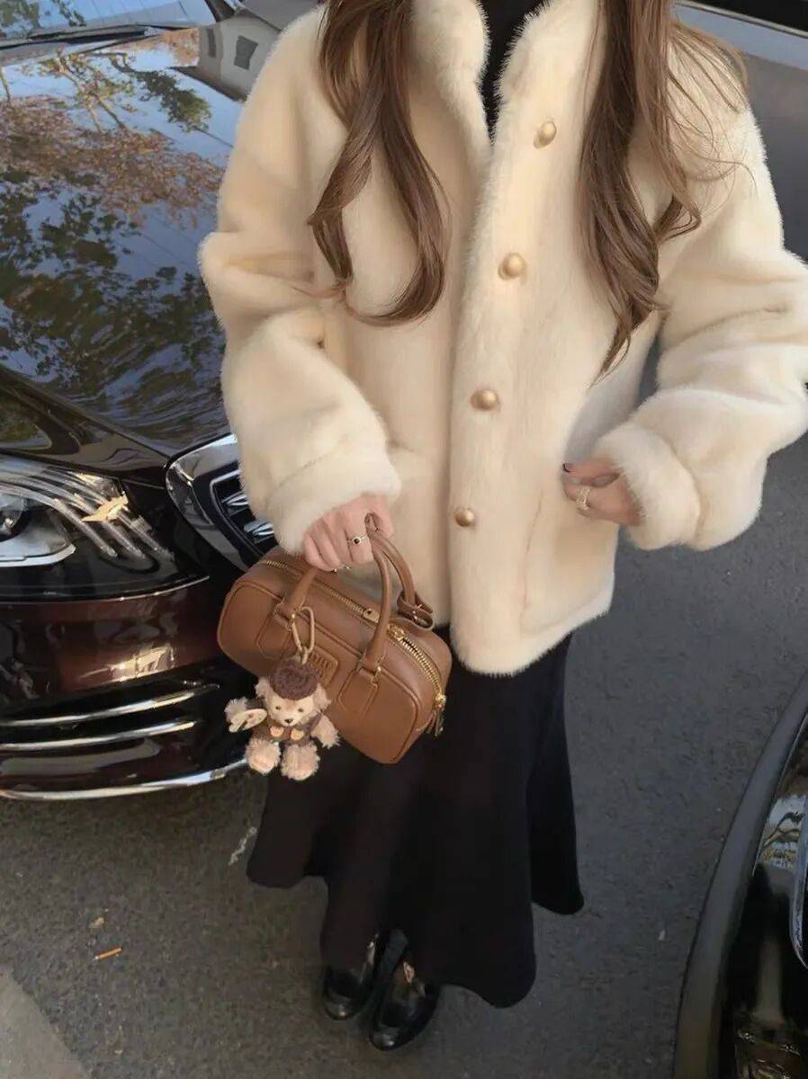 高奢贵妇局,线下专柜供货同版本,小香风仿水貂绒环保皮草外套,软软糯糯,高级贵妇感,完美色系印染,贵气十足~