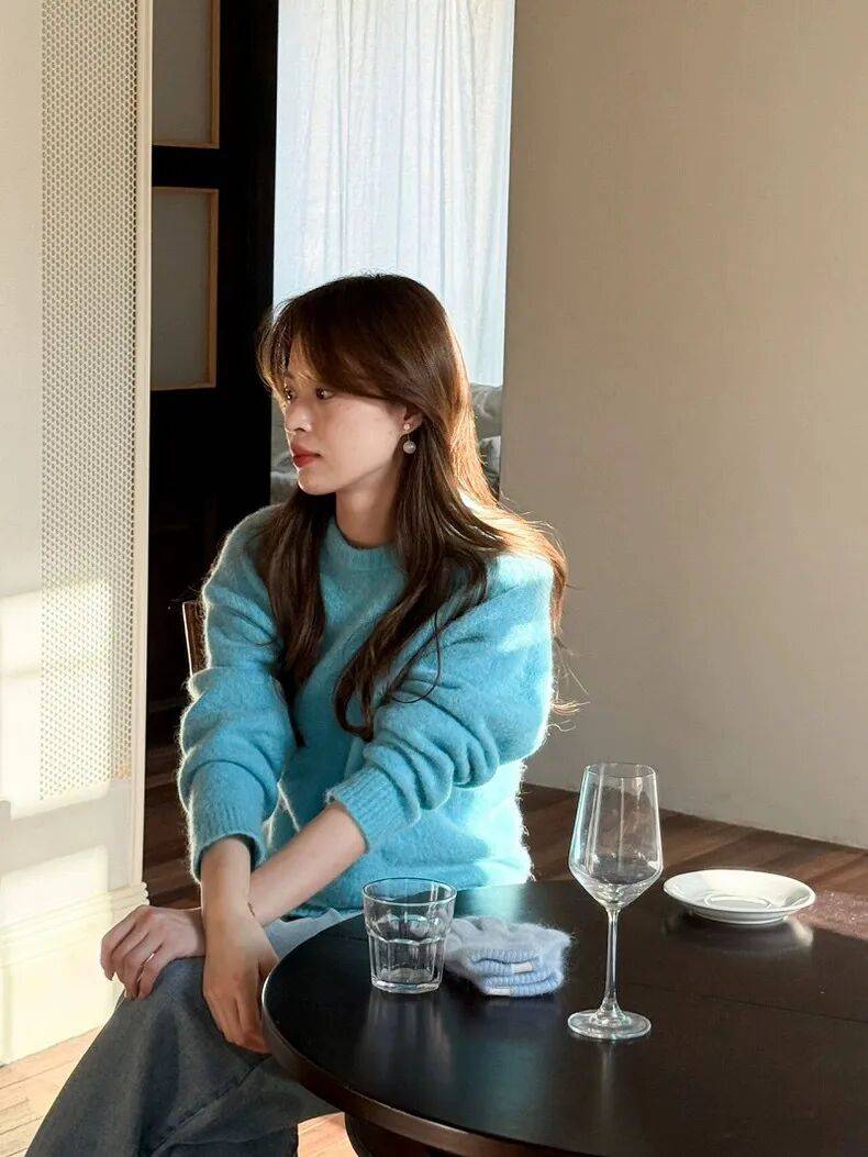 清新的塞纳湖蓝,巨巨巨显白,羊毛+马海毛的成分混纺,如同冬日暖阳一般温暖,极具视觉冲击力,能够瞬间提升整体造型的生命力!