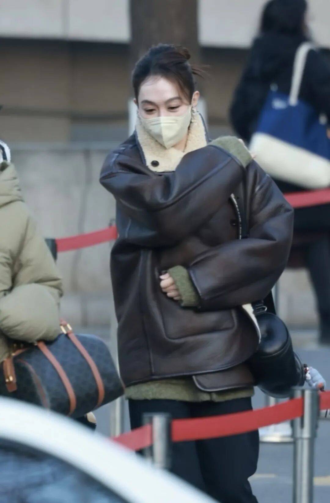 姜妍轻披毛毛外套,温暖如春日初阳,