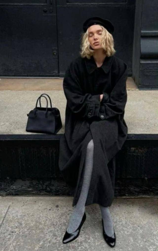 若你是高个子,就不要错过及脚踝长度的黑色大衣,套在身上,让你走路都带风,配条灰色裤袜,风度温度一把抓。