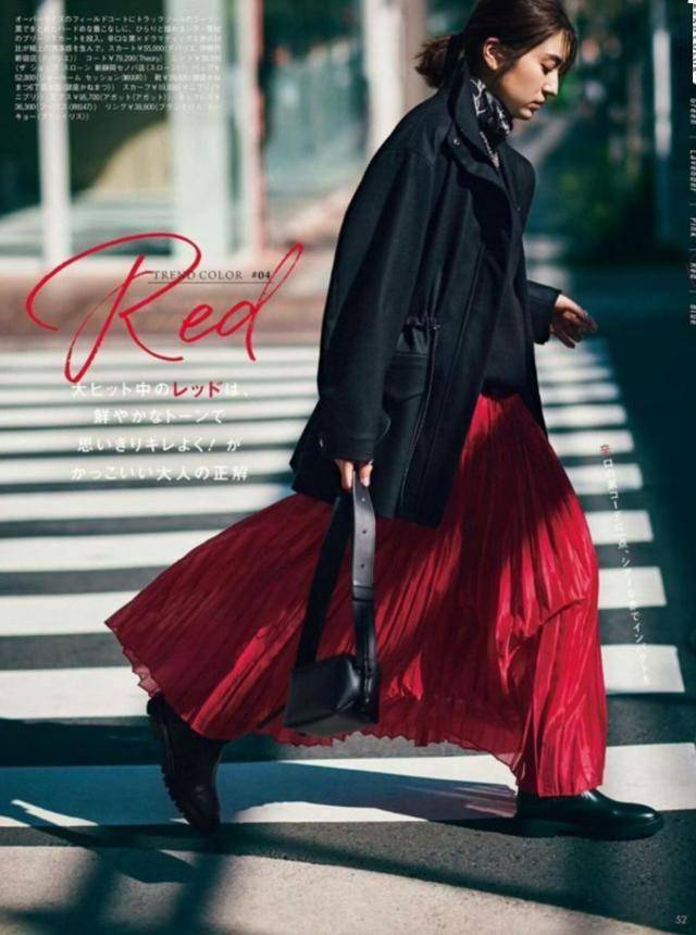 当红色大面积覆盖,和黑色成为“搭档”,低调和张扬的碰撞,将“时尚天平”稳稳定住,不再倾斜。