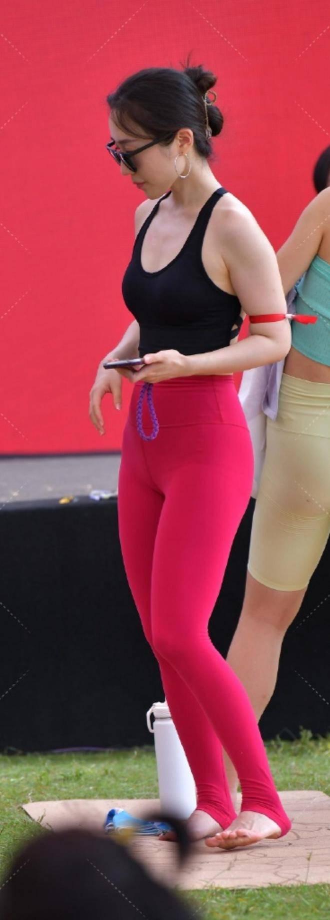 V领背心+瑜伽裤:露锁骨提升优雅度,避免低胸款。
