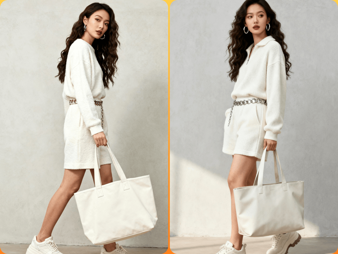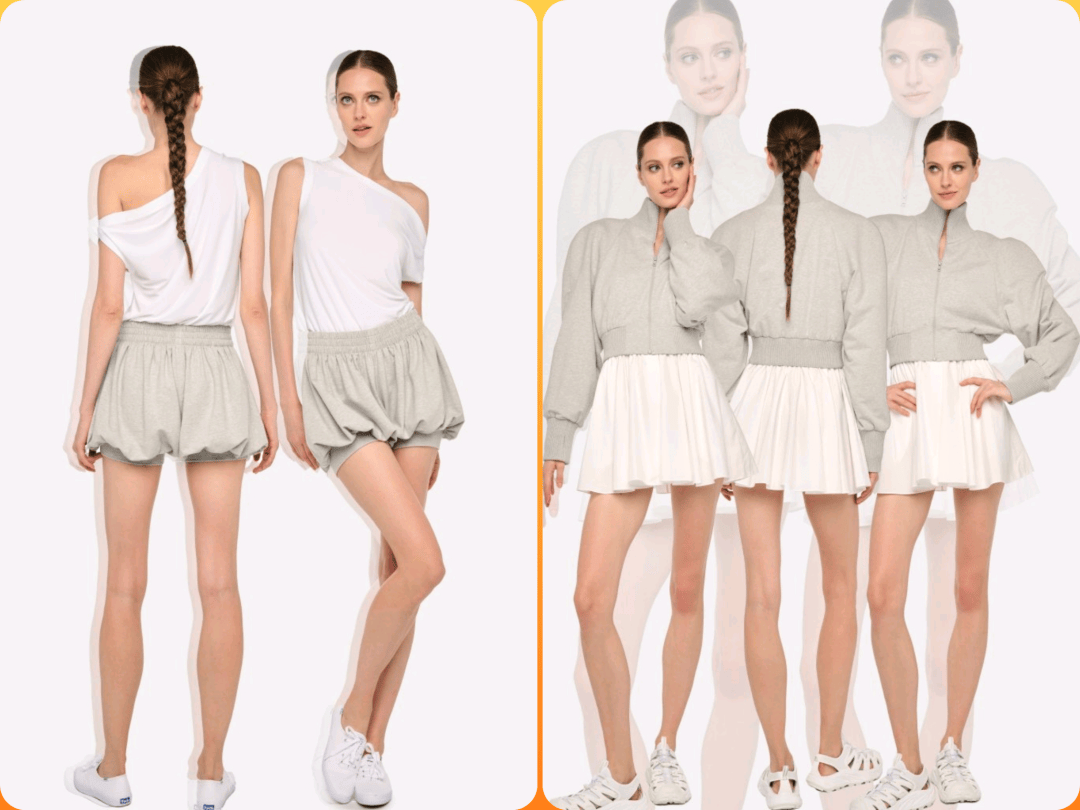 毛圈布短裤套装 + 厚底运动鞋:搭配金属感腰链与 oversized 托特包,强化复古未来感。