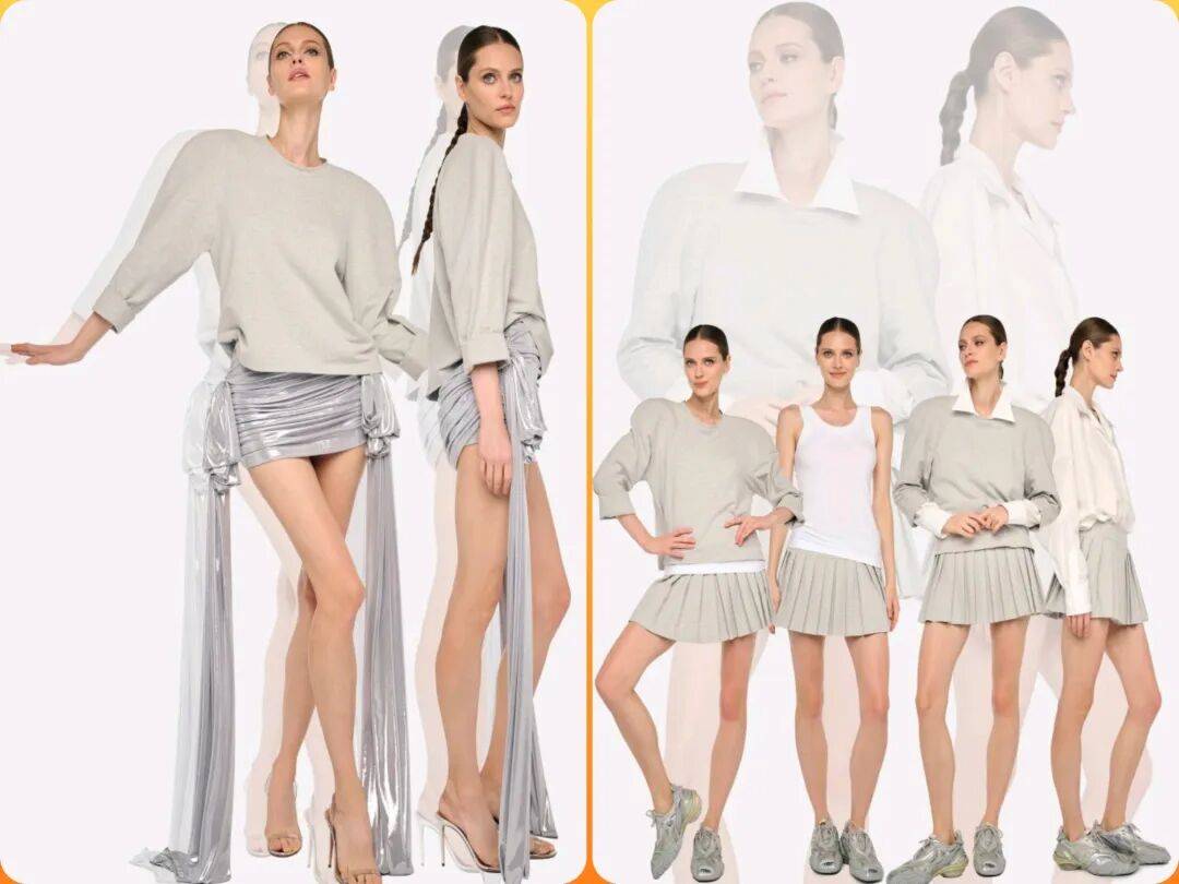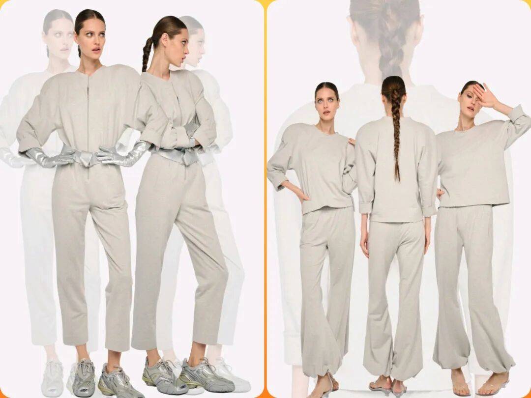 在复古元素的运动美学中,经典黑白,还有低调灰色,柔和粉等颜色,也结合柔软的面料更多褶皱和细节的设计。