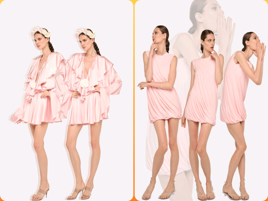 少女感的娇俏粉色颜色还在廓形线条的随性之中,优雅裙装也带着几分慵懒气质,在褶皱元素的立体、落肩的随性、拼接荷叶边的甜美等气质,为纯色的裙装也增加了细节。