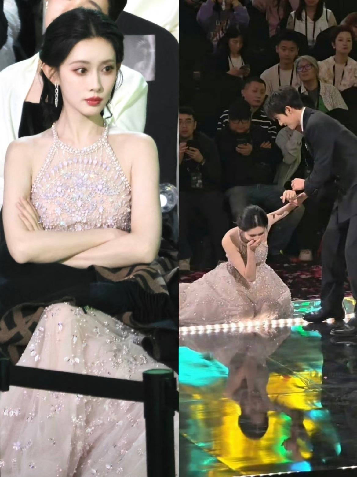 别看没捞成功,李昀锐后程发力,下台时全程保持“保镖上线”姿势:手臂横在孟姐背后,眼睛盯台阶比盯敌人还狠,嘴里碎碎念“慢点慢点”,就差没把她扛起来走。台上乱成一锅粥,前排的丞磊听到动静,嗖地甩开白鹿的手,180度折返跑,差点把白鹿带个趔趄;白鹿也戏精上身,一把搂住孟子义:“宝贝别再摔了,我心脏受不了!”四人抱成一团笑,场面比领奖还热闹。台下也没闲着,丁禹兮远程上演“云搀扶”,屁股离座半米,手伸得比激光还远;鞠婧祎正低头刷手机,被这一幕吓得抬头懵三秒,和丁禹兮对视的表情包光速出圈。