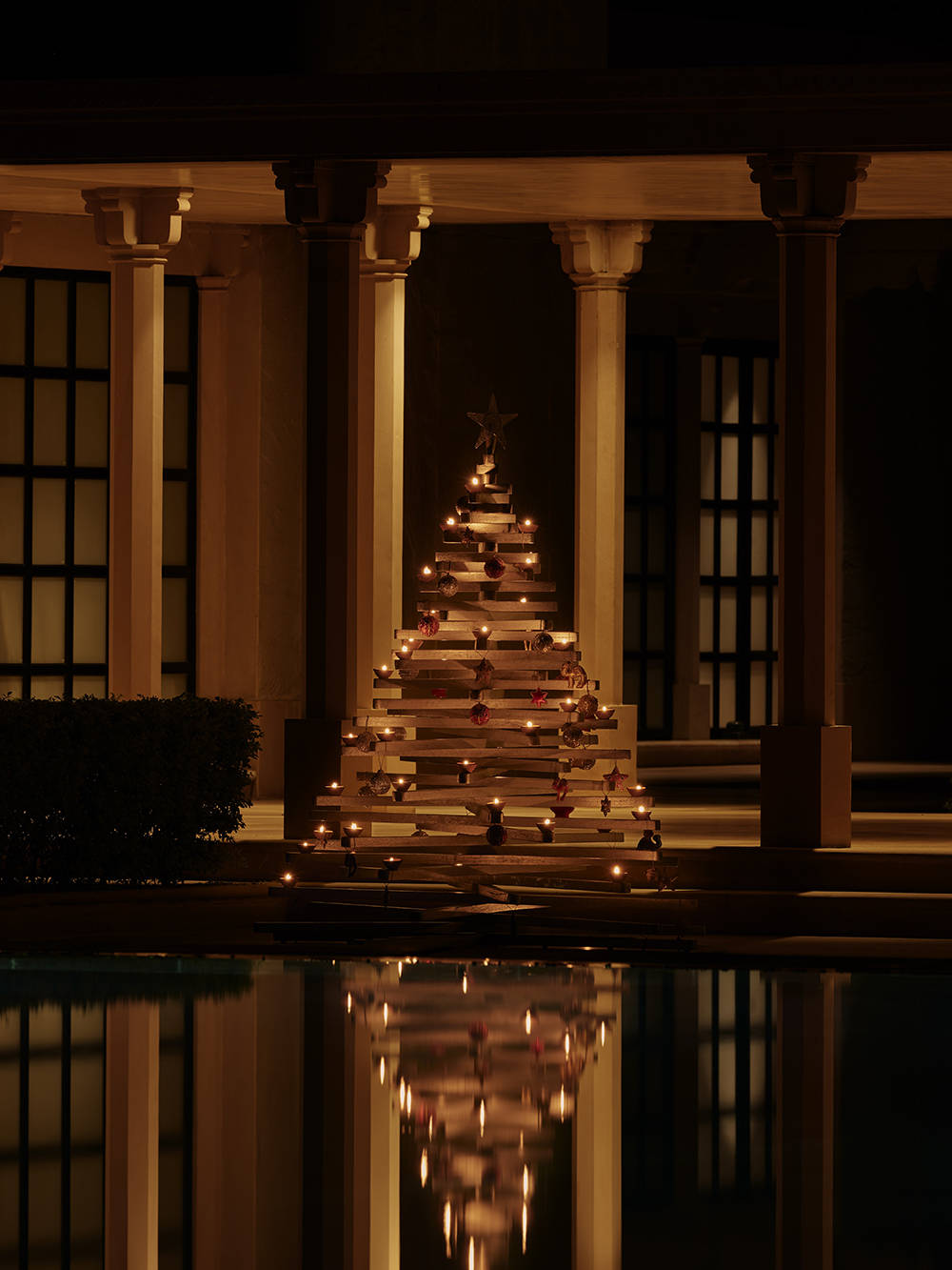 节庆季期间,安缦百阁(Amanbagh)为亲友相聚提供一处静谧避世之所,坐落于拉贾斯坦邦(Rajasthan)阿拉瓦利岭(Aravalli Hills)的永恒景致之中。在新年前夕,宾客可通过月光瑜伽、冥想与阿育吠陀灵感疗愈(Ayurveda-inspired therapies)重整身心,于静美庭园中找回内在平衡。餐饮与文化体验从西式及印度多道式盛宴,到动手参与传统手工,如制作漆手镯(Lac bangle)与绘制蓝果丽(rangoli)——以彩米或彩砂呈现象征好运的精致纹样。骆驼马球、马尔瓦里马骑行与头巾缠绕展示亦将宾客与当地丰厚文化底蕴紧密相连。日暮时分,星空下的宁静夜晚适合沉思;平安夜当天,将在户外奉上伴随长笛旋律与拉贾斯坦民谣的露天庆典晚宴,共庆年末。