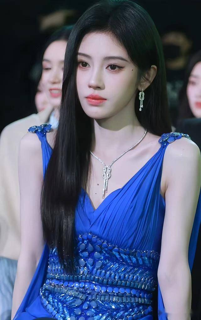 这位一直以“甜妹”形象示人的95后小花,这次居然走起了御姐路线。她穿着一件深蓝色露肩礼服,