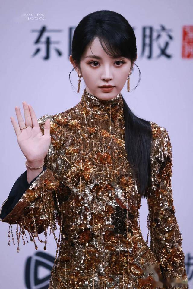 但当镜头拉近时,所有人都被田曦薇的颜值征服了——精致的五官,完美的皮肤状态,尤其是那双眼睛,仿佛在说全场我最美。