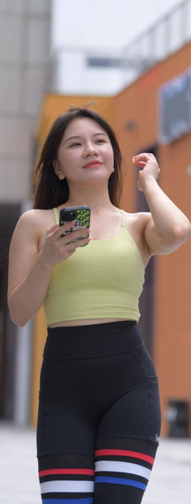 短款露腰:短背心/针织衫 + 高腰瑜伽裤,突出腰线,适合苹果型身材 。