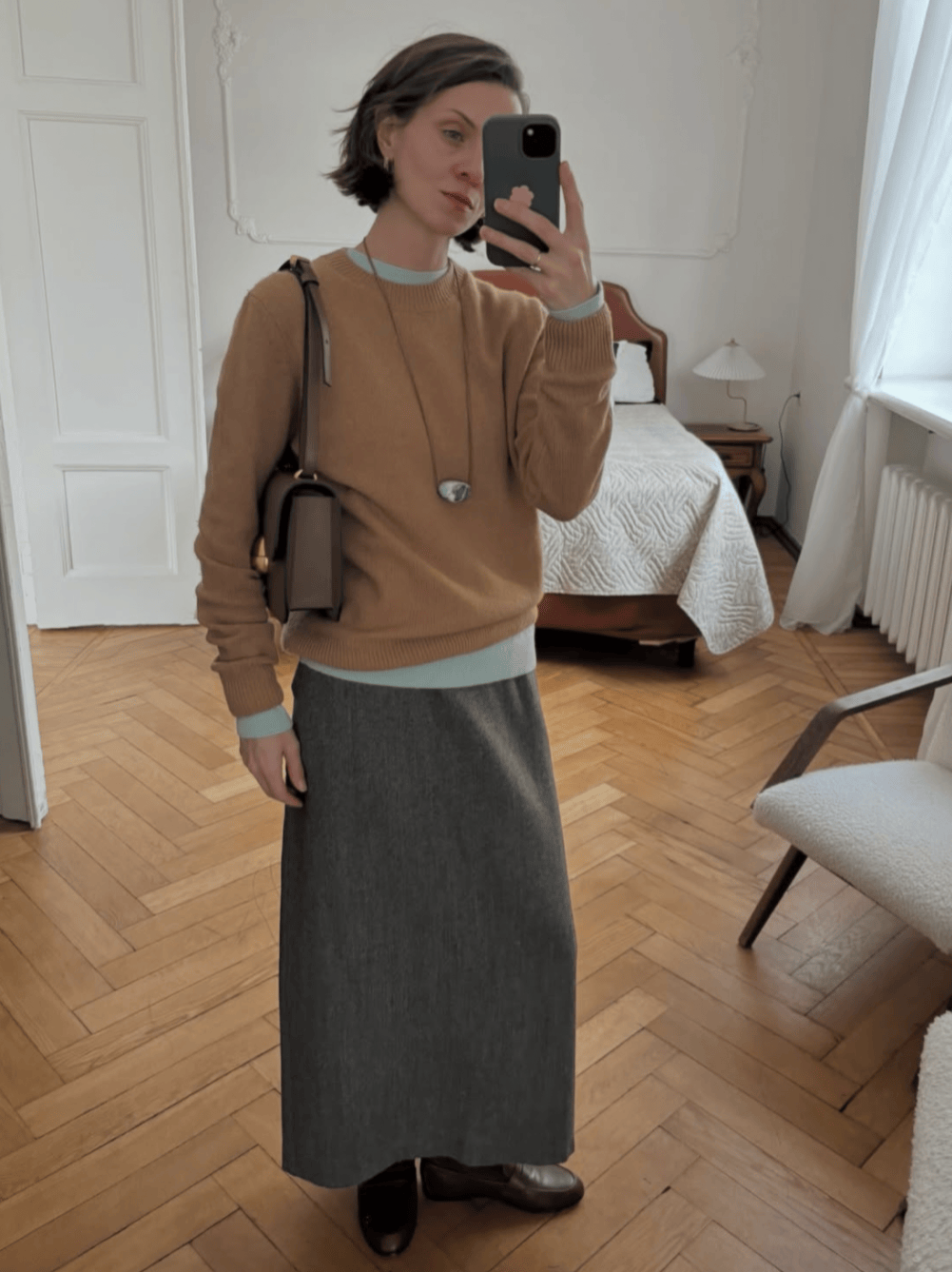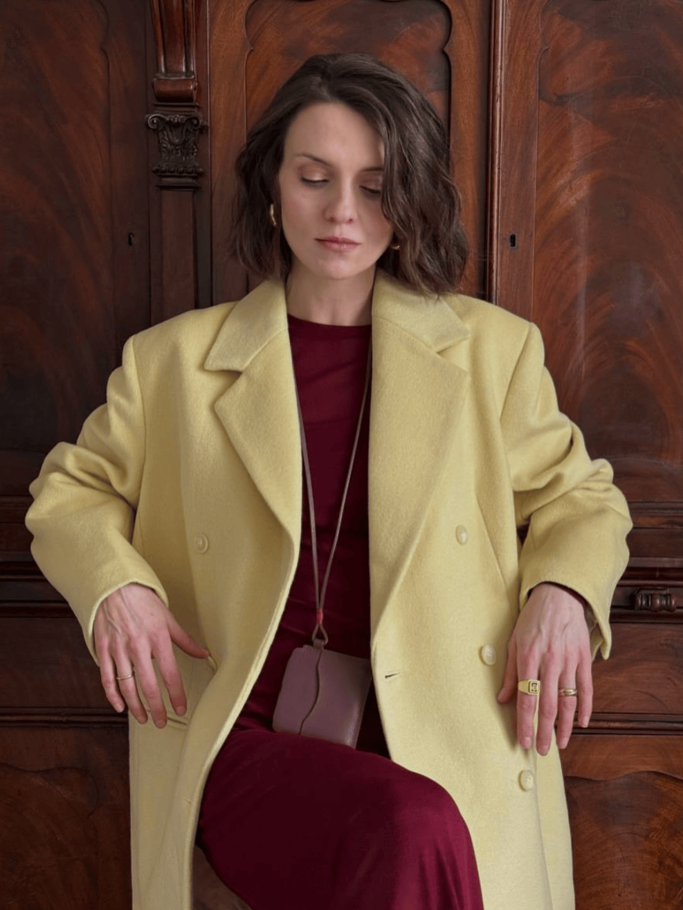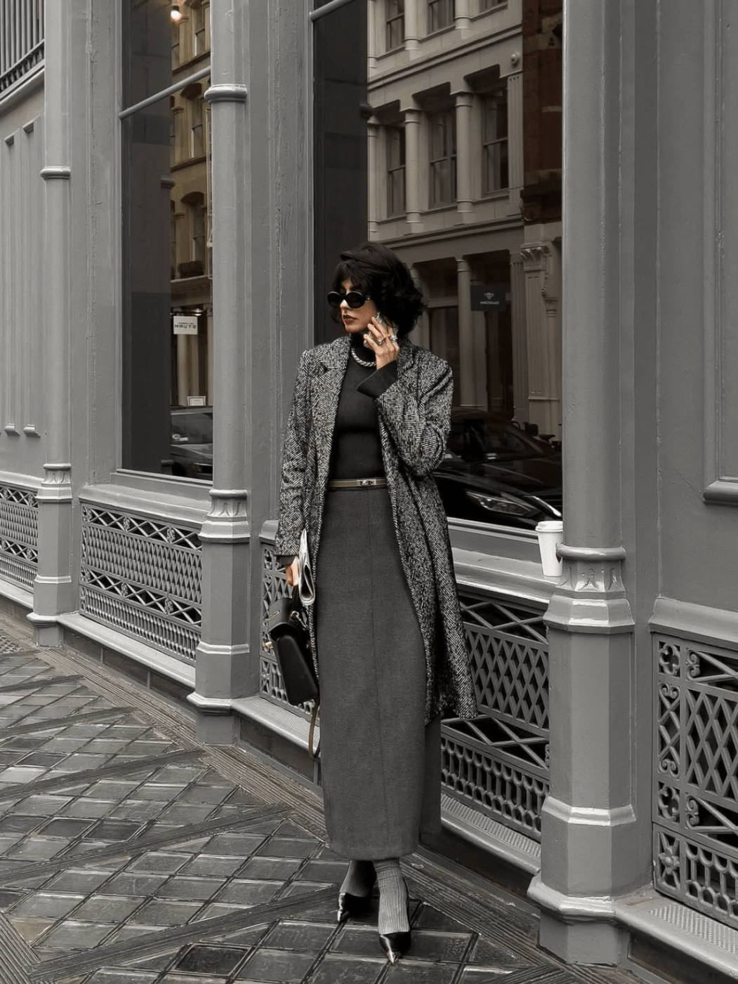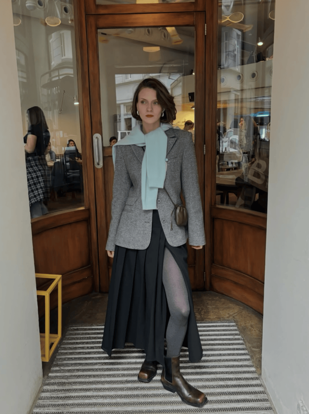 🌟 矩形大衣+内搭叠穿,短发造型更高级