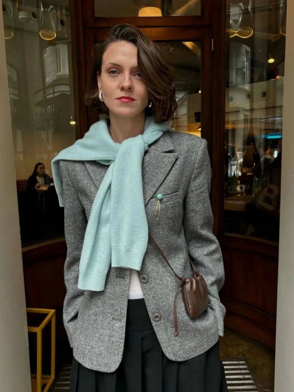 色彩搭配:避免全黑沉闷,尝试酒红、墨绿、焦糖色等,让短发与穿搭更协调