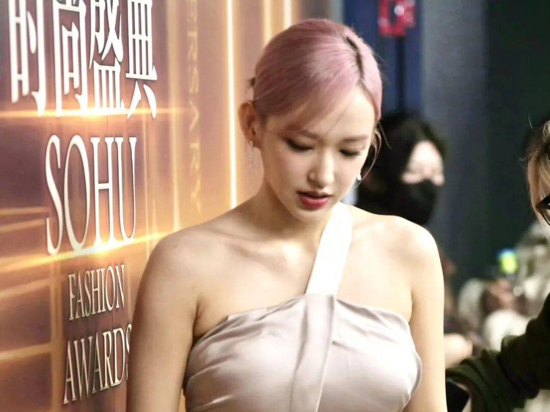 妆发上,利落的高丸子头毫无保留地突显了完美的头肩比与天鹅颈,冷冽而干净的妆容聚焦于眉眼间的疏离与坚定。在活动现场特意营造的暗光环境下,她仿佛自夜色中凝结而生,被媒体精准地形容为“夜色黑天鹅”,那份冷艳灵动的气质,即便在无修的生图之中也依旧夺目,展现了其顶级的皮肤状态与镜头表现力。