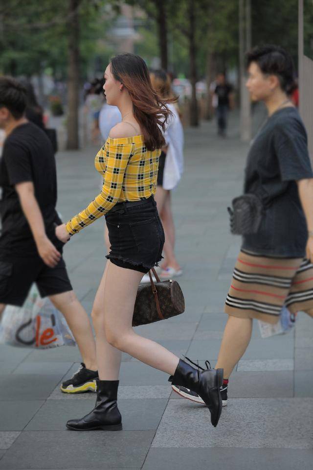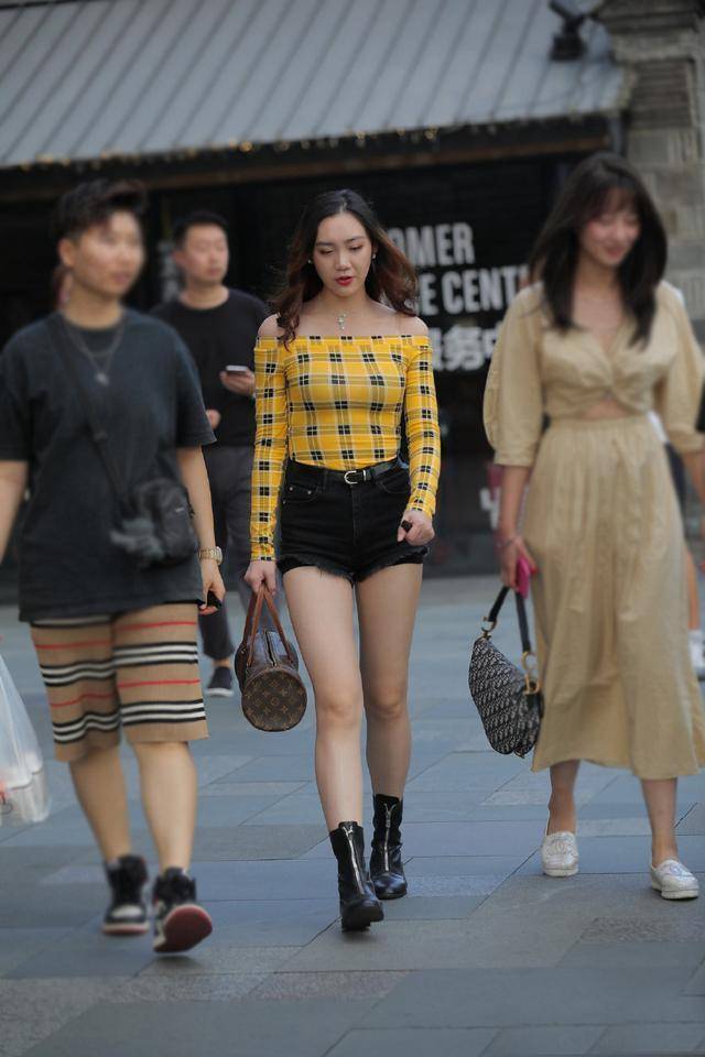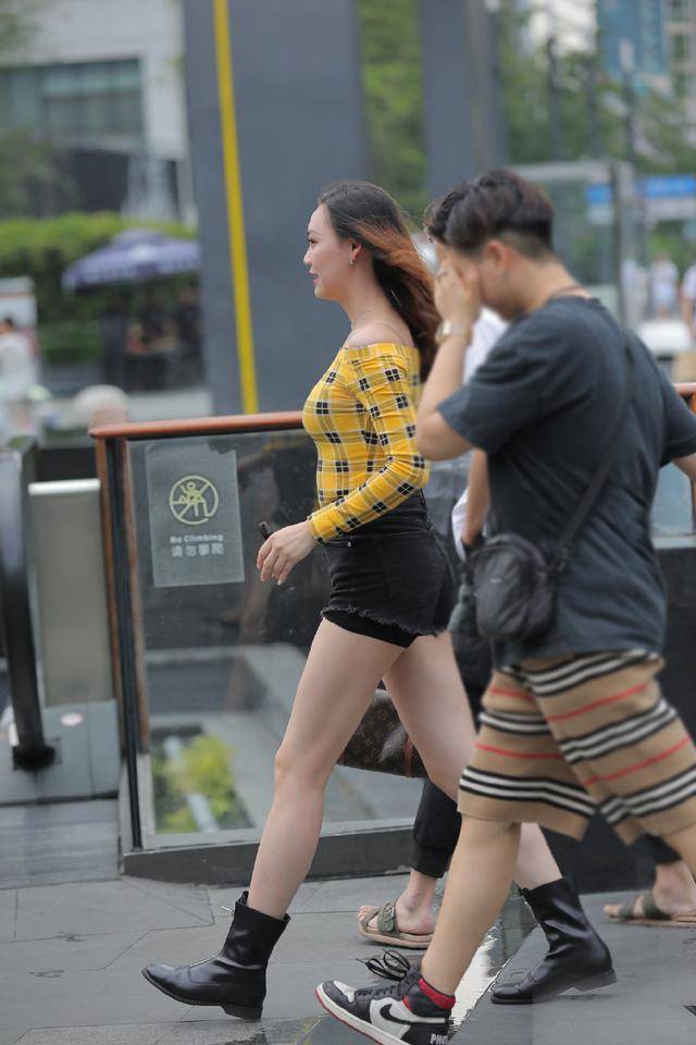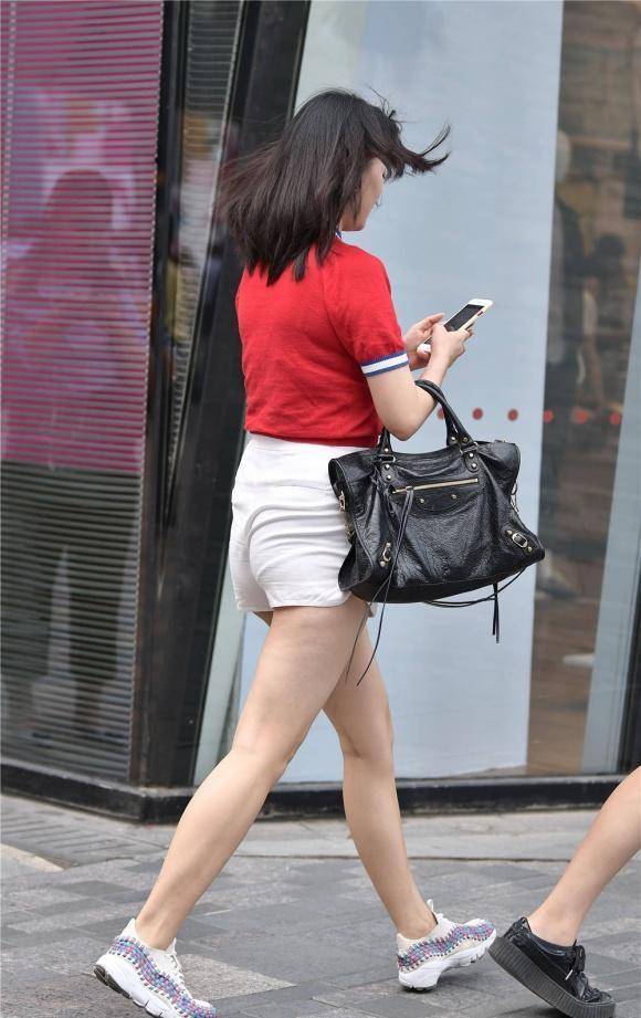纯白或简约图案T恤搭配浅蓝色高腰牛仔短裤,清新自然。选择破洞或毛边设计的短裤增加细节感,搭配老爹鞋或帆布鞋,慵懒中透出街头潮流气息。深色T恤则显瘦且增添酷感,适合梨形身材。