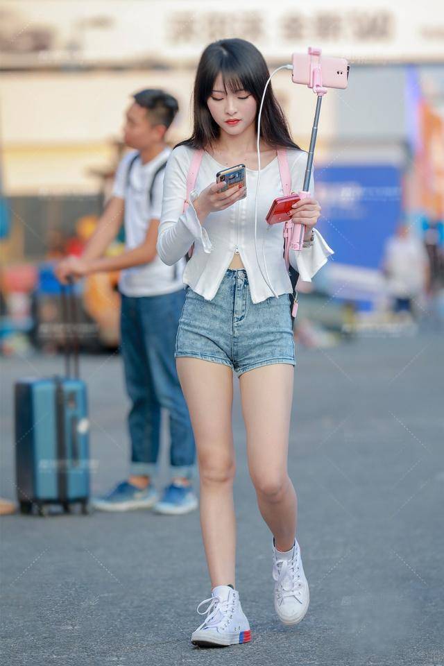 日常出街:白T+浅蓝短裤+帆布鞋(清新简约)