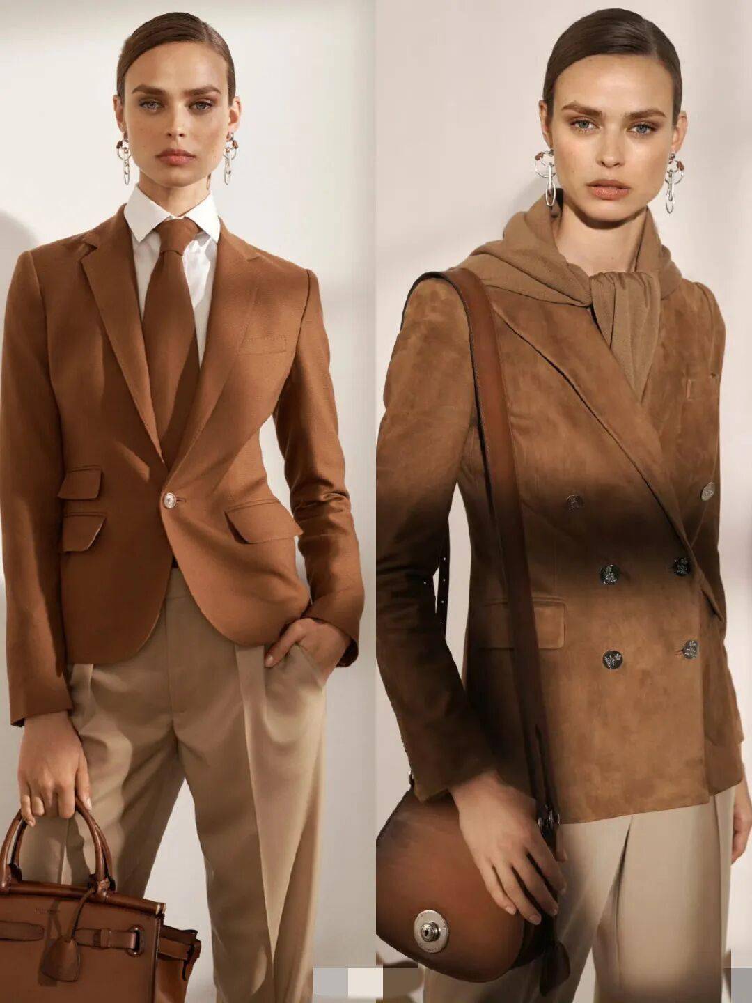 同色系叠搭:浅卡其配深咖、燕麦色搭奶油白,通过深浅变化营造层次,避免单调。