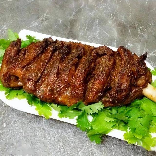 煮好的羊腿放在案板上,切几刀,趁热时将烧烤调料倒在羊腿上,进行按摩约10分钟,让所有的肉都沾到调料