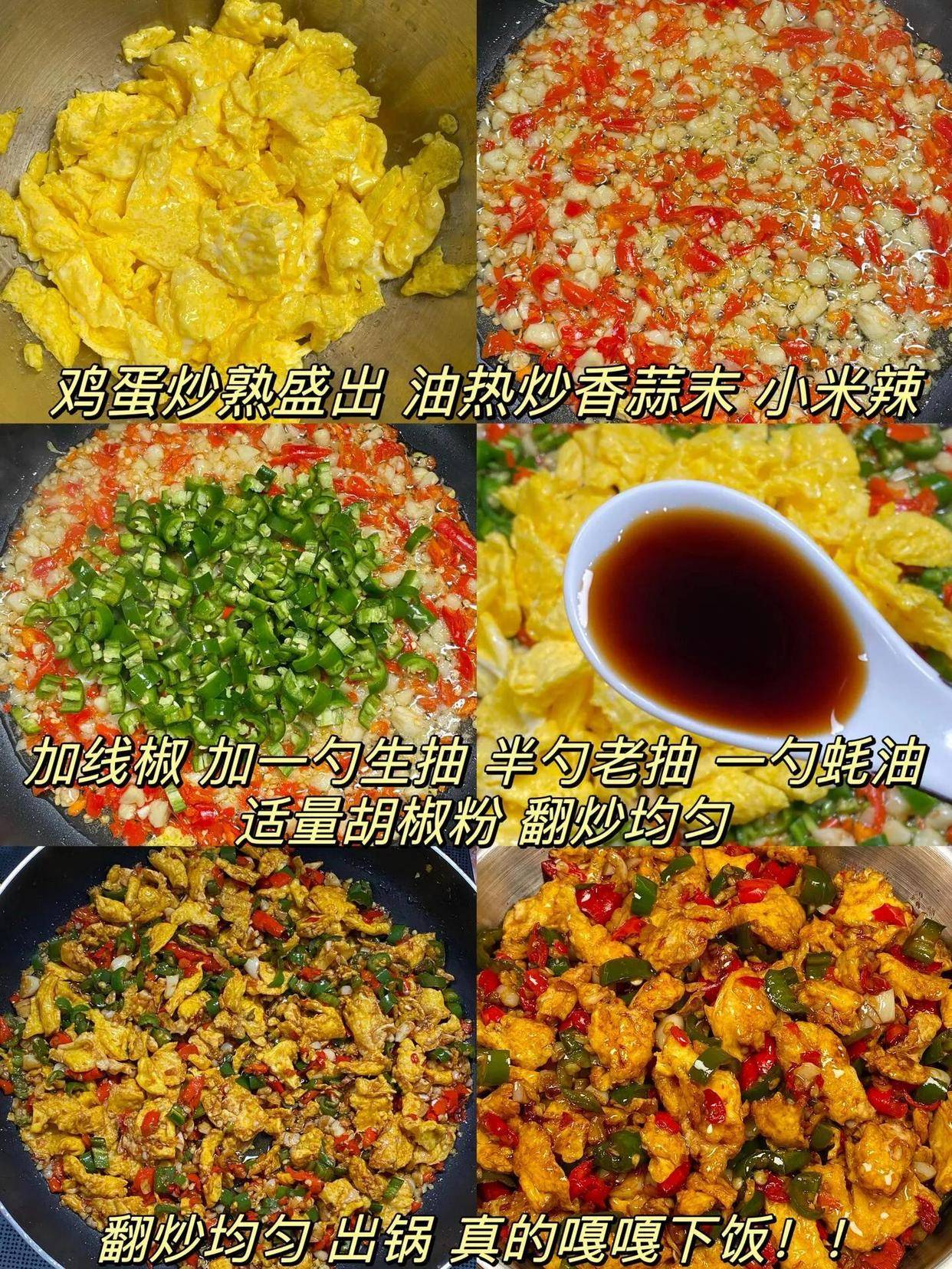 4. 最终融合:将之前炒好的滑蛋倒回锅中,与辣椒快速翻炒几下。沿锅边淋入水淀粉,汤汁会立刻变得明亮并包裹在食材上,这就是“勾芡”。再翻炒两下,确保芡汁均匀,即可出锅。整个过程要快,才能保持鸡蛋的嫩和辣椒的脆。