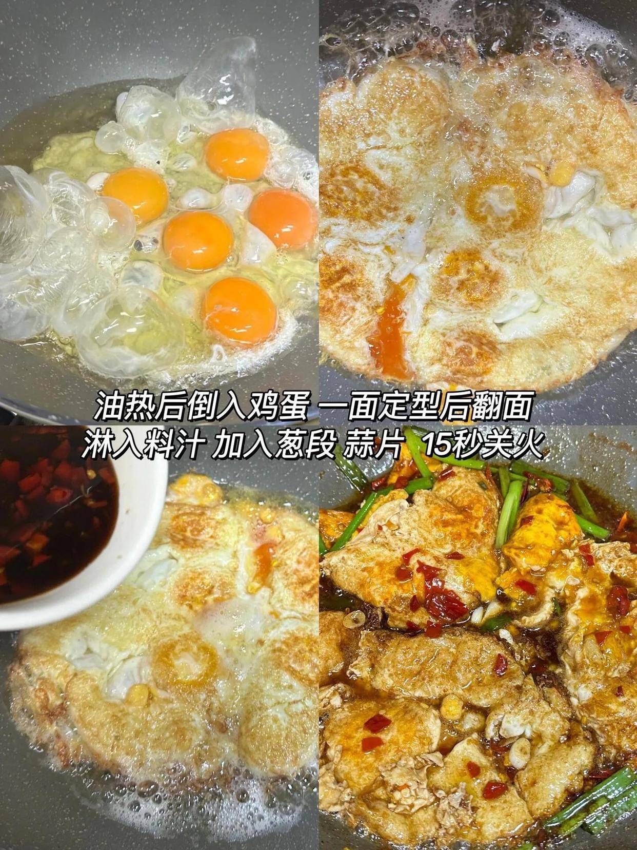 4. 大火快炒定型:蛋液入锅后稍作停顿,待底部开始凝固。然后用锅铲快速划散、翻炒。全程保持中大火,让鸡蛋在高温下迅速膨胀并包裹住葱花。炒到鸡蛋刚刚完全凝固,还保持着金黄嫩滑的状态时,立刻撒入剩下的一半葱花,快速翻炒两下,关火,利用余温让葱绿变软出香。